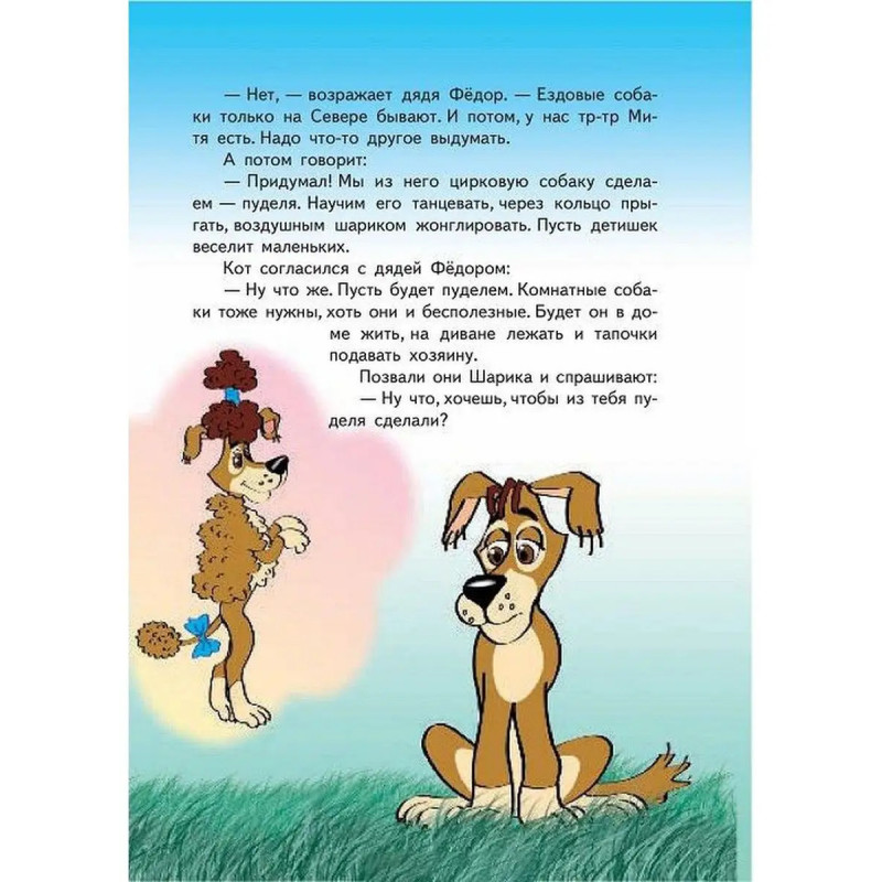 Дядя Федор, пес и кот. ISBN 9785-17077-3633. Писатель Эдуард Успенский очень любит животных. И не просто любит, а хорошо понимает. Возможно даже, хотя это тайна, он знает собачий и кошачий языки лучше самого профессора Семина из книги про дядю Федора. Именно поэтому кот Матроскин и пес Шарик хоть и сказочные, но такие живые и настоящие, что теперь все коты и собаки кажутся на них похожими. Зато дядя Федор (мальчик) ни на кого не похож. Таких детей просто не бывает! Самостоятельный, ответственный - чудо-ребенок, мечта всех родителей! Эта троица из Простоквашино уже покорила не одно поколение детей, а сколько ей еще предстоит!