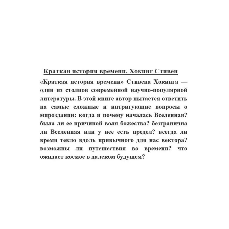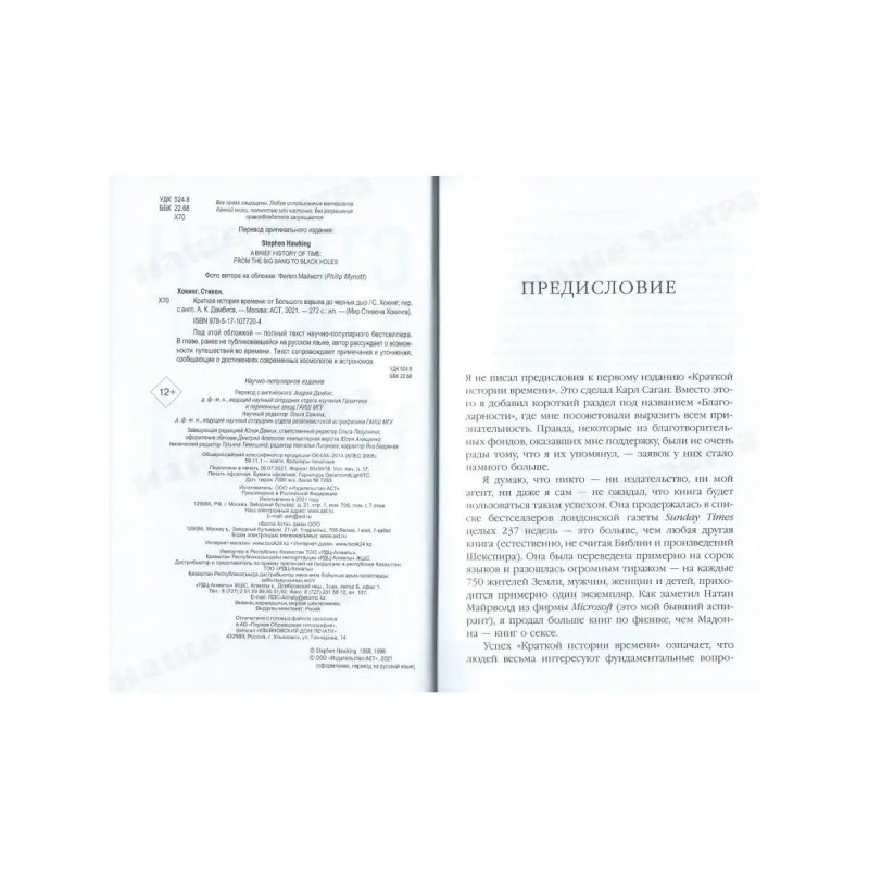 Характеристики Краткая история времени.