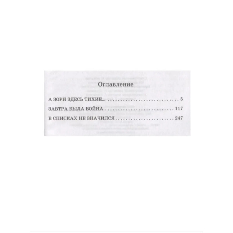 А зори здесь тихие. Борис Львович Васильев (1924 2013) русский писатель и сценарист. С началом Великой Отечественной войны ушёл на фронт добровольцем в составе истребительного комсомольского батальона. Воевал под Смоленском и под Вязьмой. Более тридцати книг, созданных Васильевым, по праву стали классикой отечественной литературы. В сборник вошли наиболее известные произведения Б. Васильева о войне. Повесть "А зори здесь тихие " (1969) посвящена великому, но не попавшему в сводки военных событий подвигу пятерых юных девушек-зенитчиц, под руководством старшины Васкова в мае 1942 года вступивших в неравный бой с отрядом немецких диверсантов. Действие повести "Завтра была война" (1984) происходит накануне войны. Это история о выпускниках, которым совсем скоро предстояло взять в руки оружие и отправиться на фронт защищать Родину. Повесть "В списках не значился" (1974) воспевает подвиг настоящего русского солдата, последнего защитника Брестской крепости, лейтенанта Плужникова.