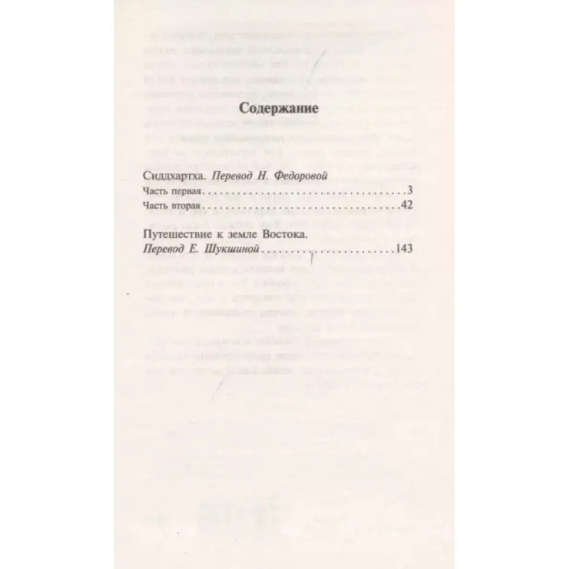 Сиддхартха жемчужина прозы Германа Гессе, на страницах которой нашли свое отражение путешествия писателя по Индии, а также его интерес к восточным религиям. Местом действия является Индия времен Сиддхартхи Гаутамы основателя одной из наиболее глубоких и мудрых религий человечества буддизма. В этой небольшой книге Гессе удалось объяснить европейцам ее суть, создать идеальную систему некий свод взаимосвязанных правил как нужно жить, как следует исправлять свои ошибки, как найти свое истинное "я". Эту притчу стоит читать и перечитывать не из-за сюжета и в поиске новых знаний, а из-за того глубинного понимания мира, ощущения единения с окружающими, которое она дает. В издание также включена аллегорическая повесть "Путешествие в страну Востока".