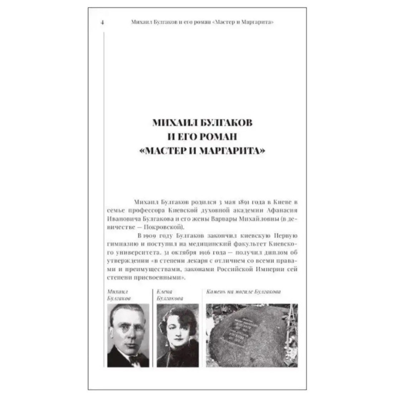 Мастер и Маргарита. Роман "Мастер и Маргарита" одно из ярчайших явлений мировой литературы XX века. Даже для современников Булгакова эта книга таила множество загадок, с течением же времени их становится все больше. Роман настолько многозначен, что исчерпывающие пояснения к нему заняли бы такой же объем, как сам текст. Поэтому в книге лишь коротко прокомментированы основные сюжетные линии, реалии, ушедшие из современной жизни, и указаны прототипы основных героев романа. Если же этой информации вам покажется мало, то вперед роман-загадка таит в себе еще немало любопытного!