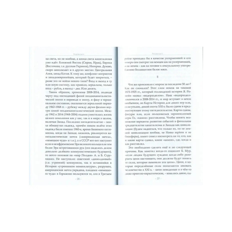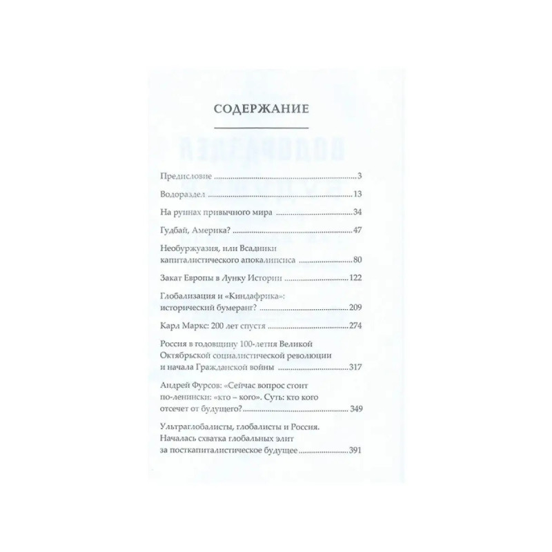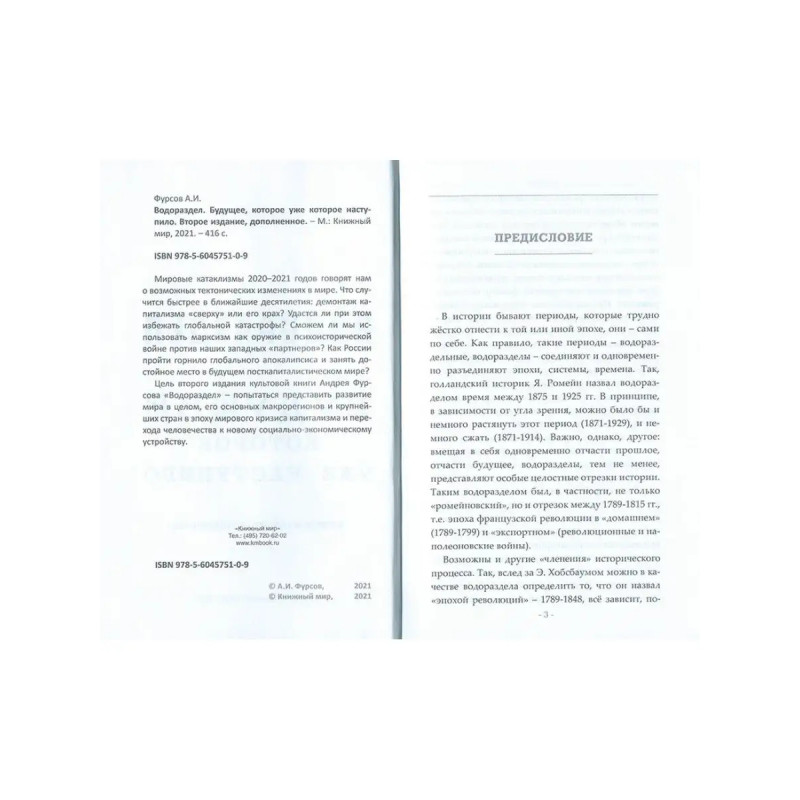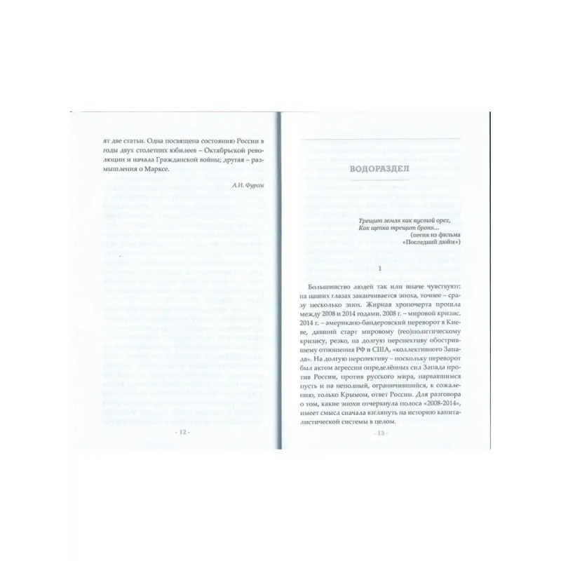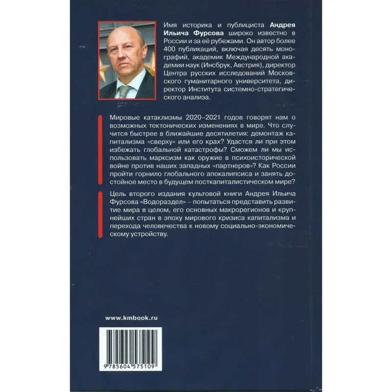 Водораздел. Будущее, которое уже наступило (2-е издание). Мировые катаклизмы 2020 2021 годов говорят нам о возможных тектонических изменениях в мире. Что случится быстрее в ближайшие десятилетия: демонтаж капитализма "сверху" или его крах? Удастся ли при этом избежать глобальной катастрофы? Сможем ли мы использовать марксизм как оружие в психоисторической войне против наших западных "партнеров"? Как России пройти горнило глобального апокалипсиса и занять достойное место в будущем посткапиталистическом мире? Цель второго издания культовой книги Андрея Ильича Фурсова "Водораздел" попытаться представить развитие мира в целом, его основных макрорегионов и крупнейших стран в эпоху мирового кризиса капитализма и перехода человечества к новому социально-экономическому устройству.