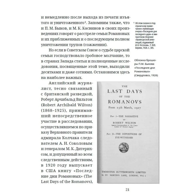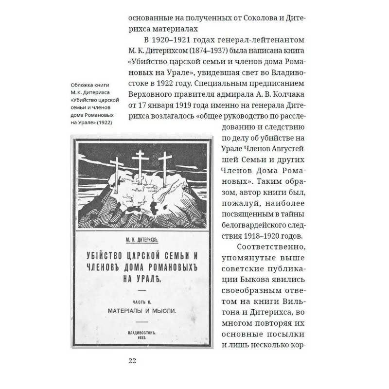 ISBN 978-5-6044010-3-3. Не царская правда. События, произошедшие в доме Ипатьева в Екатеринбурге в ночь с 16 на 17 июля 1918 года, по-прежнему продолжают будоражить умы, волновать как специалистов, так и всех, кто интересуется историей своей страны. Прошло более ста лет, но в этом деле всё так же много белых пятен, тайн, загадок и вопросов, ожидающих ответа. Удалось ли убедительно доказать факт убийства царской семьи? Чьи останки были найдены под Екатеринбургом? Кому выгодно скрывать правду об истинной судьбе членов императорской фамилии? Опираясь на огромное множество документов и фактов, автор предлагает свою версию тех давних событий, помогает избавиться от искусственно навязываемых мифов и по-новому взглянуть на укоренившиеся стереотипы. Эмоциональная дистанция по отношению к своему прошлому даёт возможность извлечь максимальный опыт из исторических уроков. Издание будет интересно всем, кому небезразлична история страны, и кто хочет разобраться в самых запутанных эпизодах российского прошлого.