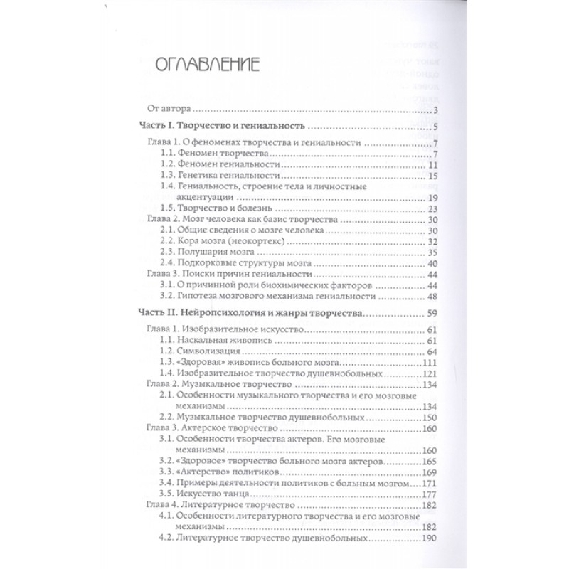 Книга посвящена творчеству как свойству психики человека. Творчество — один из самых важных, интересных и загадочных феноменов человеческого духа. Существует множество книг, в которых творчество рассматривается многоаспектно. Что же касается мозговых механизмов творчества, то они затрагиваются в единичных работах. При этом попытки их описания преимущественно фрагментарны. Между тем процессы, которые совершаются в головном мозге человека, чрезвычайно важны не только для собственно проблемы творчества, но и для понимания феномена Человек, который способен творить чудеса в науке, живописи, музыке, литературе, на сцене, и тем самым продвигать человечество по пути цивилизации, а, значит, и эволюции в целом. Основной акцент в работе делается на особенностях функционирования различных областей здорового и больного мозга, на специфике общечеловеческих закономерностей работы мозговых структур, а также их индивидуальных проявлениях. Автор рассматривает особенности так называемого нормативного и больного мозга, мозга таланта и гения, осуществление разных видов творчества мозгом человека. Особое внимание уделено в книге вопросам выявления и развития творческих способностей у ребенка. Широкому кругу читателей будет интересен материал, отражающий существующие на сегодняшний день представления о нейропсихологичесчких основах творчества.