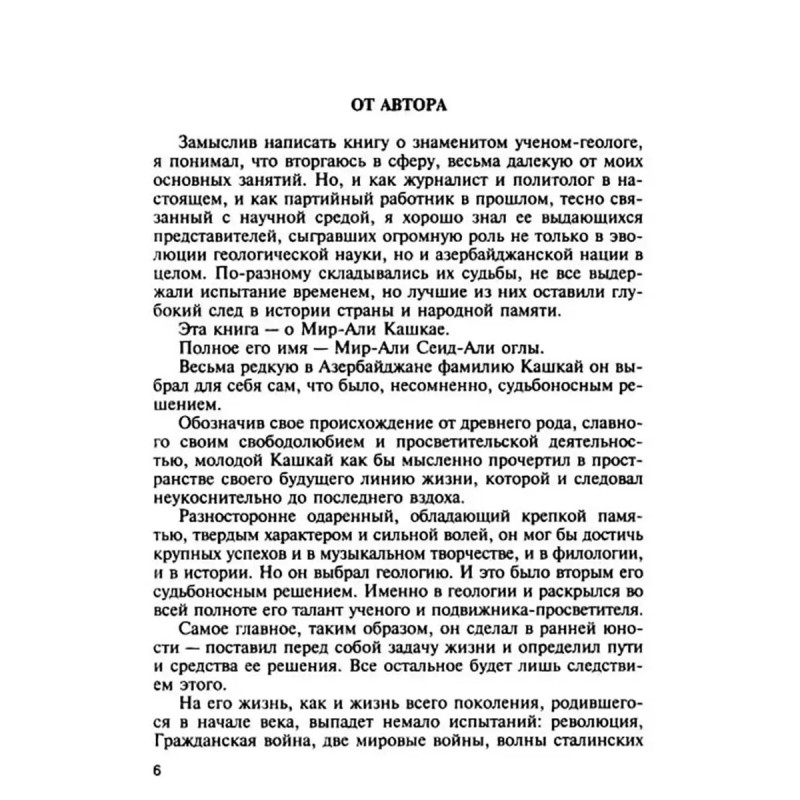 Мир-Али Кашкай. Мир-Али Кашкай прожил яркую жизнь, полностью отдав ее служению людям. Биография крупнейшего азербайджанского ученого не была гладкой. В ней отразились практически все главные изломы XX века, она наполнена большими человеческими радостями и огромными личными трагедиями. Но, несмотря ни на что, герой книги выстоял и оставил нам ценнейшее наследие.