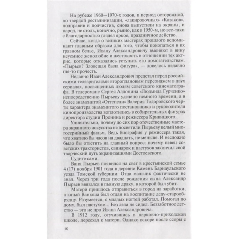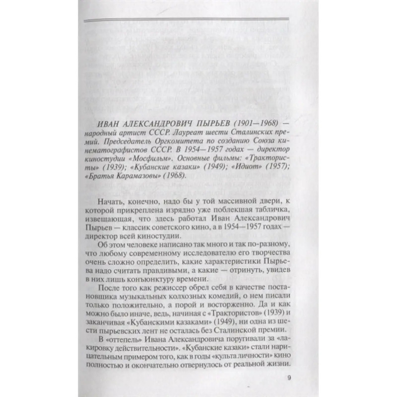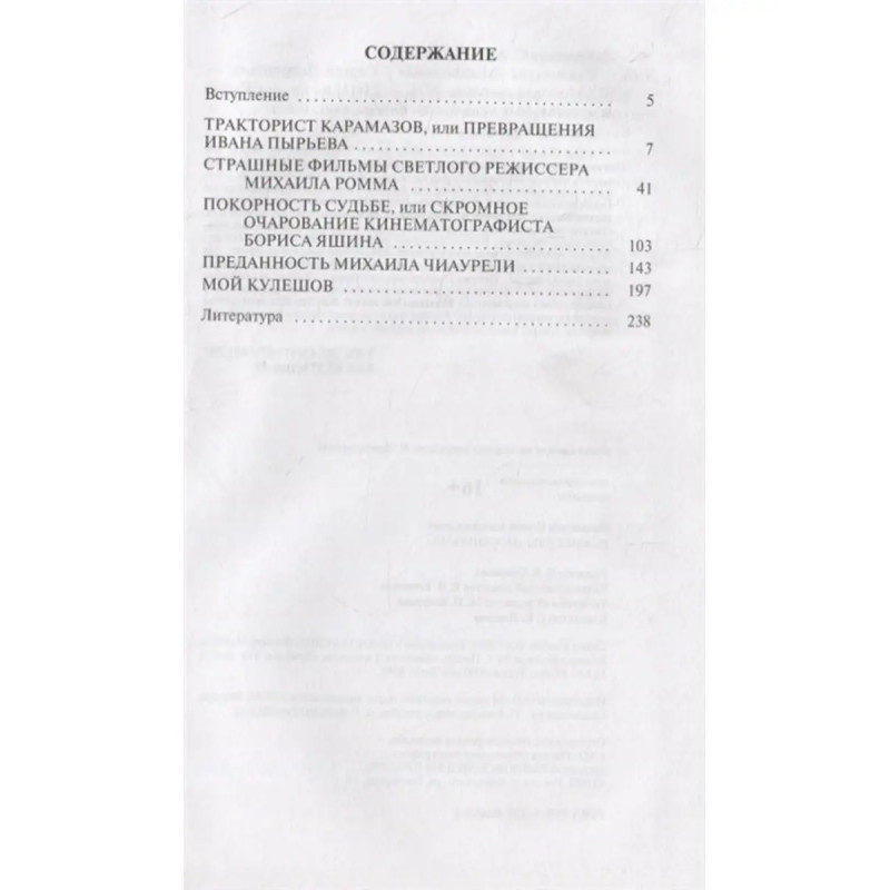 ISBN 9785235044531. Когда говорят о кино, прежде всего имеют в виду актеров. Между тем основной фигурой в создании фильма является режиссер. Лишь он может сделать картину выдающейся или заурядной. Артист способен что-то улучшить (если правильно подобран) или ухудшить (если постановщик ошибся в выборе исполнителя). В книге рассказывается о жизни и творчестве пяти замечательных режиссеров, подаривших нам удивительные киноленты, ставшие неотъемлемой частью жизни миллионов, и открывших нам блистательных артистов. Кто-то из героев книги искренне воспевал сомнительные явления. Кто-то потом каялся. Кто-то отказывался делать то, что противоречило его художественным устремлениям, и платил за это трагедией безвестности...