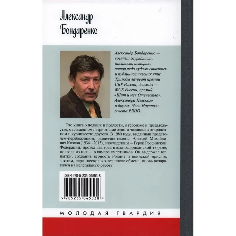 Из всей ярчайшей биографии разведчика-нелегала Героя Российской Федерации Алексея Михайловича Козлова (19342015) рассекречен всего лишь один период: в конце 1970-х годов он сумел получить информацию о тайном создании в Южно-Африканской Республике ядерного оружия. В 1980 году, из-за предательства, разведчик оказался в юаровской тюрьме, где ему прошлось пройти через нечеловеческие испытания но он не сломился, не сдался. Более того, возвратившись после обмена на Родину, Алексей Михайлович вскоре вновь был направлен на нелегальную работу за границу, что стало случаем воистину уникальным: в любой разведке карьера "провалившегося" разведчика заканчивается. В книге впервые достаточно подробно рассказывается и о других страницах биографии легендарного разведчика, а также о том человеке, который его предал, изменив воинской присяге и своему Отечеству.