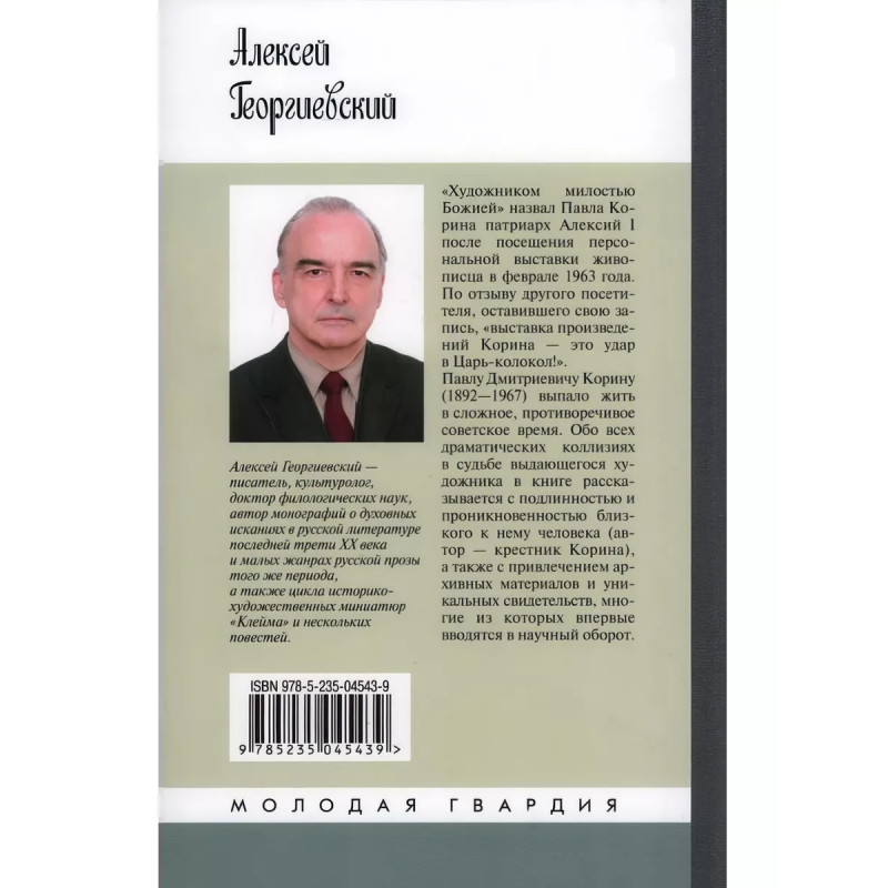 Корин Георгиевский А. С. Автор книги, писатель, культуролог, доктор филологии, крестник Павла Корина. Рядом с великим художником он провел всё детство и начальные юношеские годы, поэтому с полной достоверностью свидетельствует о духовном облике и жизненных перипетиях одного из столпов классической русской живописи и культуры XX века, которому выпало жить в сложное, противоречивое советское время. Обо всех драматических коллизиях в судьбе замечательного художника рассказывается с подлинностью и проникновенностью близкого человека, а также с привлечением архивных материалов и уникальных свидетельств, многие из которых впервые вводятся в научный оборот. Настоящее историко-биографическое издание рассчитано на широкий круг читателей, интересующихся отечественной культурой.