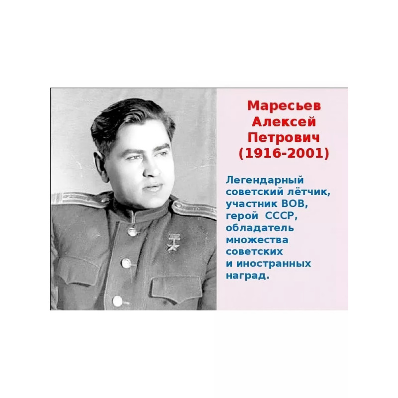 Маресьев. Карташов Н. А. Имя летчика-истребителя А. П. Маресьева вошло в книги, кинофильмы и школьные учебники как имя человека несгибаемой воли и величайшего мужества, отваги и героизма. Кто знает, выстоял бы Советский Союз в той страшной и кровавой войне, если бы не было таких настоящих патриотов Отечества, как А. П. Маресьев. В послевоенные и последующие годы на примере его яркого подвига были воспитаны тысячи героев, он вселил веру и вернул надежду великому множеству людей, оказавшихся по тем или иным причинам в трудных жизненных ситуациях. Эта книга - единственная на сегодняшний день полная биография легендарного летчика, человека-легенды. Она написана на основе воспоминаний как самого А. П. Маресьева, так и воспоминаний его земляков, однокашников, однополчан, военачальников, коллег по работе и т. д. Органично вплетены в канву повествования и впервые представлены читателю материалы, которые автор разыскал в Центральном архиве Министерства обороны Российской Федерации.