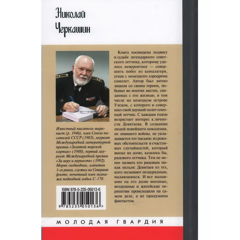 Михаил Девятаев. Черкашин Н. А. Книга посвящена подвигу и судьбе легендарного советского летчика, которому удалось невероятное - совершить побег из концлагеря, угнав с немецкого аэродрома самолет. Автор был лично знаком со своим героем, побывал во многих местах, связанных с его жизнью, в том числе на немецком острове Узедом, с которого и совершил свой дерзкий полет пленный летчик. С каждым годом возрастает интерес к личности Девятаева. В сознании людей новейшего поколения, не знавшего войны, не укладывается тот пасьянс из роковых обстоятельств и счастливых случайностей, который выпал на долю, казалось бы, рядового летчика. Тем не менее назвать его рядовым никак нельзя: Девятаев из тех, кого называют незаурядным, выдающимся. И все выпавшие на его долю военные, воздушные и житейские перипетии происходили на самом деле, а не придуманы фантастом.
