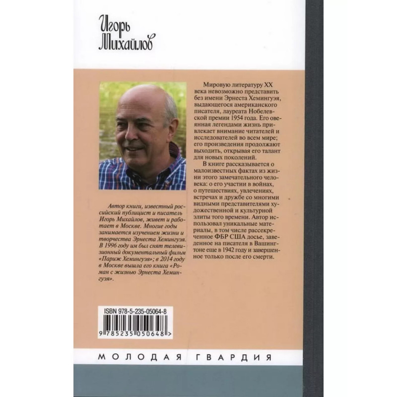 Эрнест Хемингуэй. Михайлов И. А. Мировую литературу XX века невозможно представить без имени Эрнеста Хемингуэя, выдающегося американского писателя, лауреата Нобелевской премии 1954 года. Его овеянная легендами и мифами жизнь привлекает внимание читателей и исследователей во всем мире; его произведения продолжают выходить, открывая его талант для новых и новых поколений. В книге известного журналиста и писателя И. А. Михайлова рассказывается о многих малоизвестных фактах из жизни этого замечательного человека: о его участии в войнах, о путешествиях, увлечениях, встречах и дружбе со многими видными представителями художественной и культурной элиты Скоттом Фицджеральдом, Гертрудой Стайн, Пабло Пикассо, Эзрой Паундом, Марлен Дитрих, Ингрид Бергман и другими. Автор использовал уникальные материалы, в том числе рассекреченное ФБР США досье, заведенное на писателя в Вашингтоне еще в 1942 году и завершенное только после его смерти.