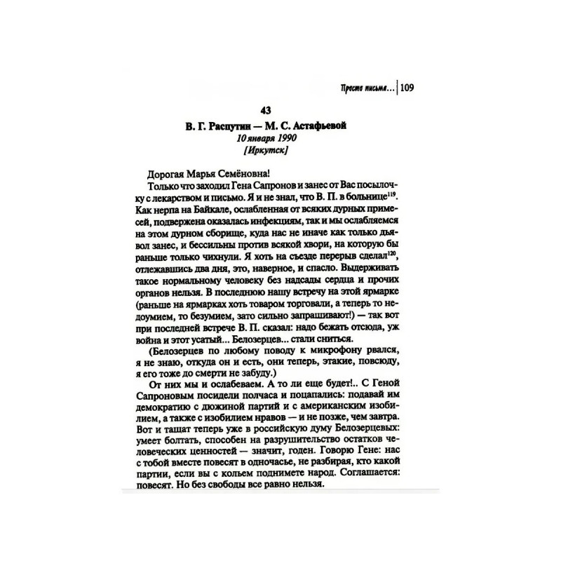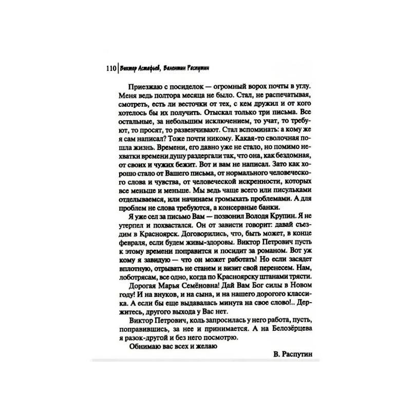 Просто письма Астафьев В. П., Распутин В. Г. Переписка двух великих русских писателей, Виктора Петровича Астафьева и Валентина Григорьевича Распутина, охватывает период в четверть века с 1974 по 1999 год. Годы по?настоящему переломные, сложные, противоречивые. На этих страницах вы не найдете панацейных рецептов, морализаторства или авторитарных оценок. Зато почувствуете дыхание простой жизни, такой, какая она была, есть Посредницей между двумя гениями на полтора десятилетия стала Марья Семёновна Астафьева. Теплота и нежность женского голоса просто и естественно вписываются в канву неоднозначных взаимоотношений двух творцов. У каждого писателя есть свое издательство. И для Валентина Григорьевича, и для Виктора Петровича им стала Молодая гвардия. Так что совсем не случайно, что эта книга выходит именно здесь. Перед вами без преувеличения памятник русской культуры и истории переломных лет. Но лучше просто вчитаемся в свет и уходящую правду, в которой слышится общее сердце