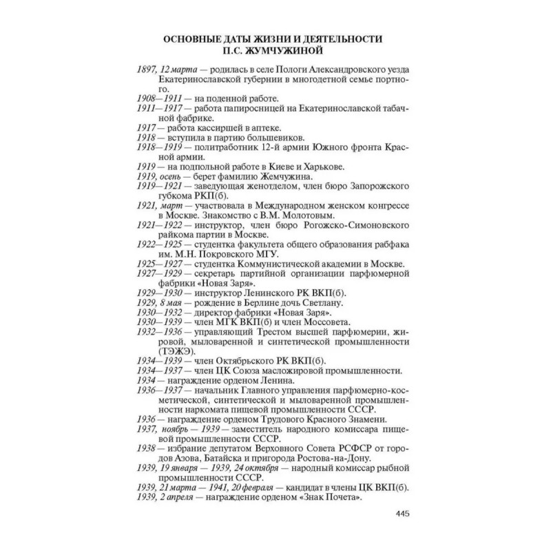 Полина Семеновна Жемчужина была не просто женой В. М. Молотова и не просто моей бабушкой, хотя последнее для меня наиболее существенно. Она сама была более чем заметной фигурой нашей, советской, истории. Девчонка из запорожских степей, песчинка в буре революции и Гражданской войны, она взлетела к вершинам кремлевского олимпа. Она фактически создала парфюмерную отрасль в СССР, поднимала пищевую промышленность. Была первой женщиной, руководившей производственным союзным наркоматом рыбной промышленности. В 1949 году Жемчужину арестовали и вынесли приговор по печально известной 58-й статье измена Родине, которой она ни на секунду не изменяла. Несколько лет она провела в ссылке, и только смерть Сталина избавила ее, как и Молотова, от почти неизбежной гибели. Автор книги внук П. С. Жемчужиной много лет собирал материалы для книги о своей бабушке, но написал ее лишь сейчас, когда были обнаружены считавшиеся утраченными письма Жемчужиной, которые во многом легли в основу этой книги.