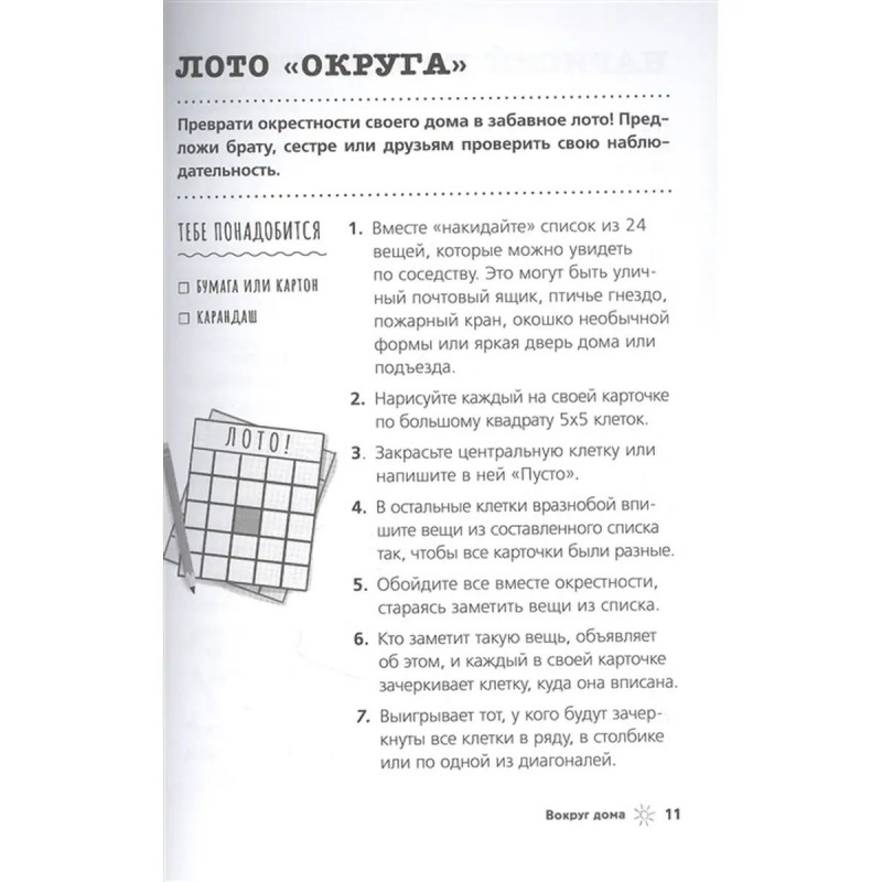 Книга "100 идей для досуга для мальчиков" полна весёлых и интересных занятий для мальчиков. Каждый проект сопровождают подробные инструкции и иллюстрации. Узнайте, как грамотно нарисовать карту местности, построить шалаш, а также разучите фокусы, создайте настольную игру и многое другое. Множество увлекательных занятий для мальчишек и их друзей уже ждут! Для младшего школьного возраста.