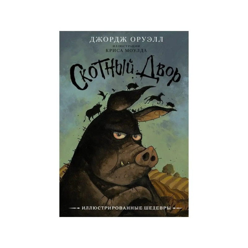 ISBN 978-5-17-146514-8. Скотный двор. Повесть-притча Джорджа Оруэлла об эволюции общества животных, изгнавших со скотного двора его предыдущего владельца, жестокого мистера Джонса, от безграничной свободы к диктатуре. Иллюстрации Криса Моулда, британского иллюстратора и автора художественных книг, удостоенного многочисленных наград.