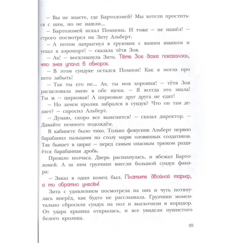 ISBN 9785171484255. Что может появиться из шляпы волшебника? Кролики? Удавы? Голуби? Не только... Цирк - место, где происходят настоящие чудеса, где можно найти своё призвание и завоевать уважение друзей, даже если ты обыкновенный, ничем не примечательный щенок. И в этом главный фокус. "Щенок из цилиндра" - первая книга Натальи Козловской, автора сценариев детских теле- и радиопрограмм. В доме у неё всегда жили разные животные: собаки, кошки, птицы и даже одна ручная оса. Может быть, поэтому и появилась эта добрая, весёлая, остроумная и изобретательная сказка. Иллюстрации С. Бордюга и Н. Трепенок.