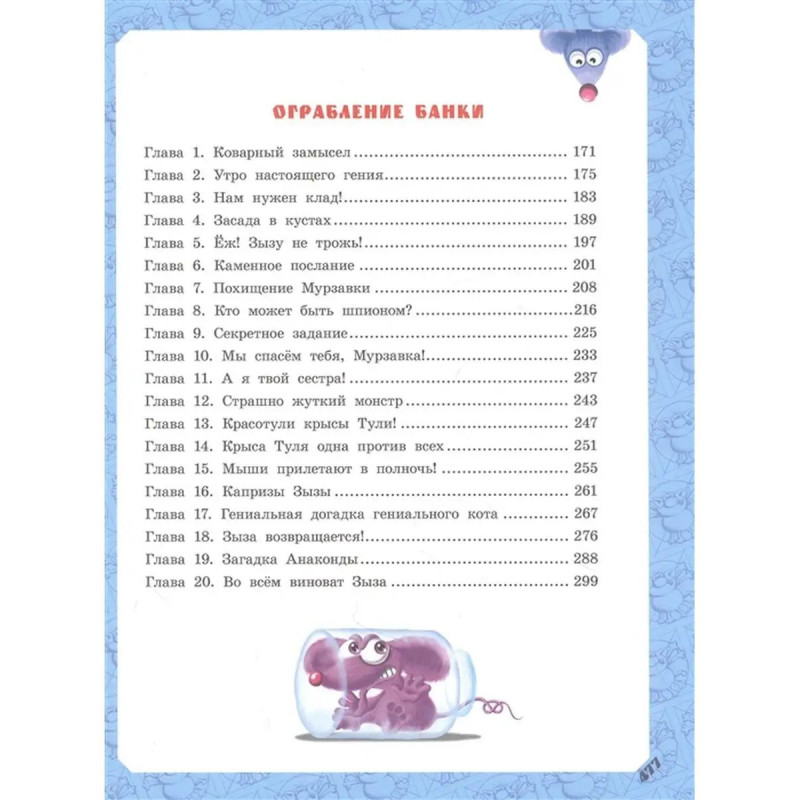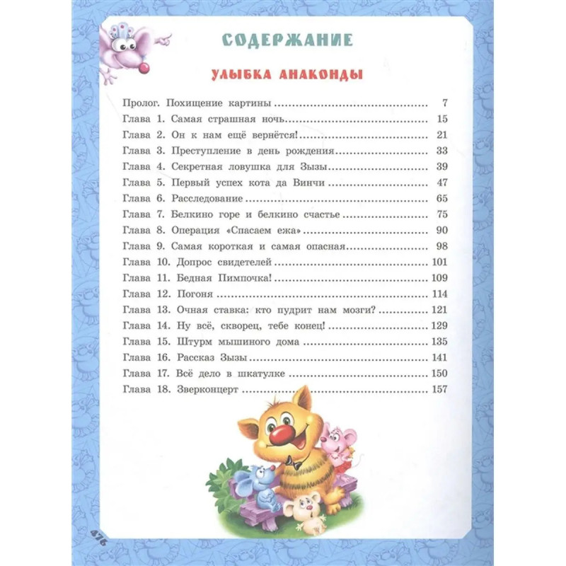 ISBN 9785171478841. В сборник "Большая книга кота да Винчи" вошли три первые истории про гениального детектива кота да Винчи: "Улыбка Анаконды", "Ограбление банки" и "Пираты Кошмарского моря". Жизнь в Зверином городе полна странных событий и загадочных происшествий. Особенно когда на горизонте появляется маленький фиолетовый злодей, мышище по имени Зыза. Он строит коварные планы и жаждет славы и богатства!Из Кукушкинского музея исчезает знаменитая картина-загадка "Улыбка Анаконды", в лапы зверей попадает карта таинственных сокровищ, а на берег высаживается экипаж пиратского судна "Бегущий по граблям"!. .