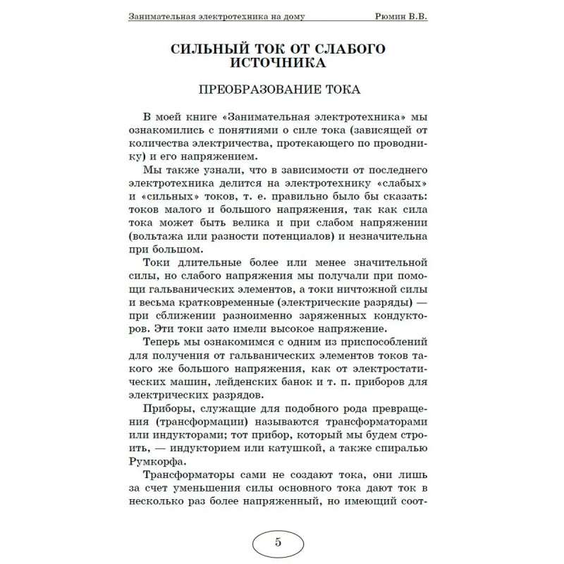 Прогрессивный советский педагог-новатор Валерий Рюмин был автором оригинальных методик преподавания. Одним из его главных принципов было в интересной и занимательной форме, максимально доступно и подробно донести до учащихся как более легкие, так и сложные темы. И даже скучные на первый взгляд предметы в его изложении становились невероятно интересными. Его пособия одинаково интересны, как школьникам, так и взрослым, ибо там много полезной информации, которая может пригодиться в быту. Настоящее издание представляет собой оригинальный текст, выпущенный в 1929 году. Автор описывает технологию создания простых приборов, помогающих читателям освоить основы электротехники. Речь идет о преобразовании тока.