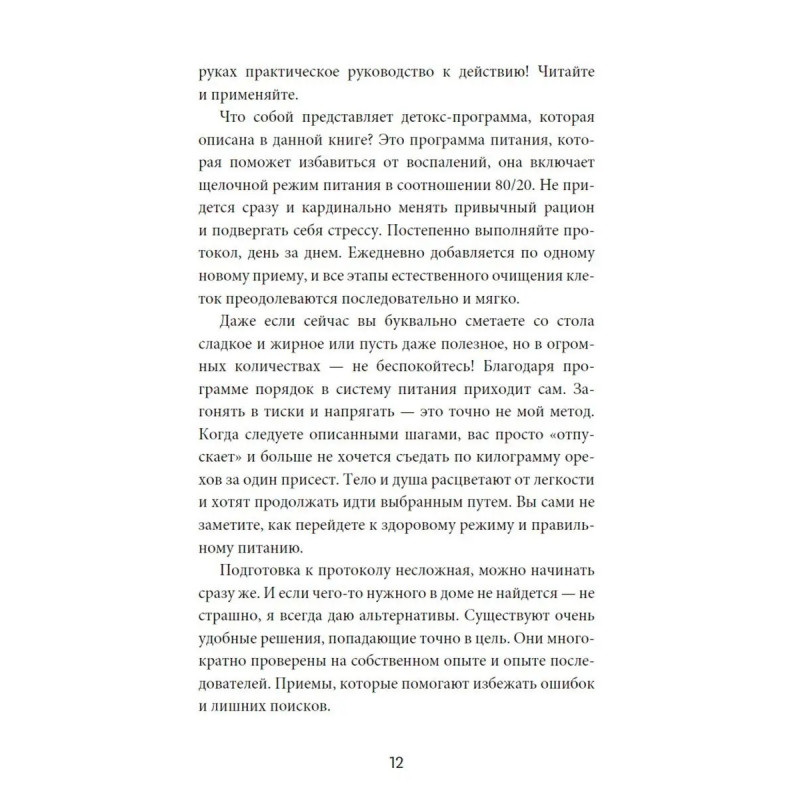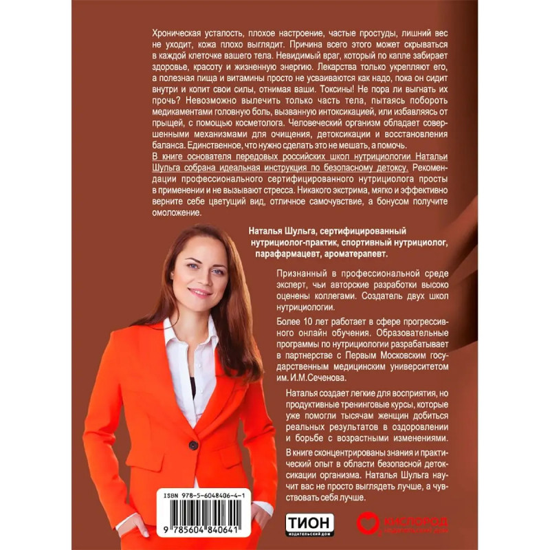 ISBN 9785-60484-0641. Детокс-перезагрузка. Практическое руководство по безопасному очищению. Хроническая усталость, плохое настроение, частые простуды, лишний вес не уходит, кожа плохо выглядит. Причина всего этого может скрываться в каждой клеточке вашего тела. Невидимый враг, который по капле забирает здоровье, красоту и жизненную энергию. Лекарства только укрепляют его, а полезная пища и витамины просто не усваиваются как надо, пока он сидит внутри и копит свои силы, отнимая ваши. Токсины! Не пора ли выгнать их прочь? Невозможно вылечить только часть тела, пытаясь побороть медикаментами головную боль, вызванную интоксикацией, или избавляясь от прыщей с помощью косметолога. Человеческий организм обладает совершенными механизмами для очищения, детоксикации и восстановления баланса. Единственное, что нужно сделать, не мешать, а помочь. Книга основателя передовых российских школ нутрициологии Натальи Шульга это идеальная инструкция по безопасному детоксу. Рекомендации профессионального сертифицированного нутрициолога просты в применении и не вызывают стресса. Никакого экстрима, мягко и эффективно верните себе цветущий вид, отличное самочувствие, а бонусом получите омоложение.