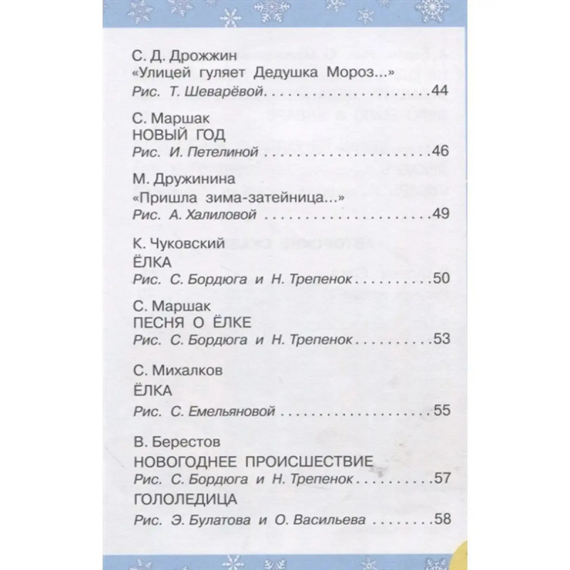ISBN 9785-1713-82650. Сказки и стихи к Новому году. В этой яркой и увлекательной книге собраны лучшие произведения о самом волшебном празднике. Окунись в калейдоскоп чудес, познакомься с Дедом Морозом и Снегурочкой, спой новогодние песенки и подружись с добрыми и весёлыми героями самых знаменитых авторов. В конце книги тебя ждут вопросы от Деда Мороза. Он специально их придумал, ведь такие задания у тебя будут в школе на уроках. Научись отвечать на вопросы по тексту, порадуй дедушку, а он поможет тебе стать самым умным в детском саду и школе. Счастливого Нового года! Для дошкольного возраста.
