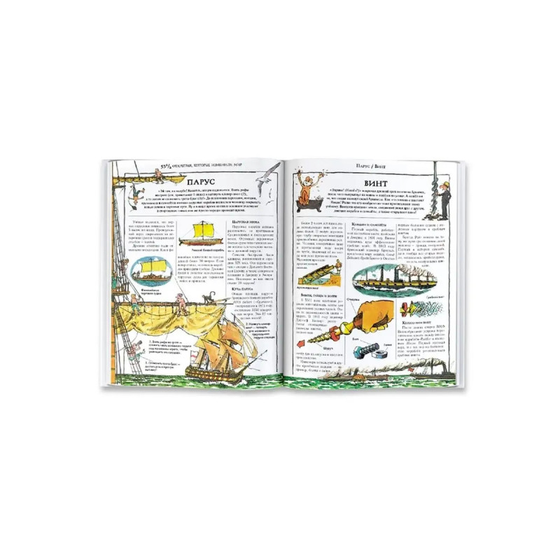 ISBN 9785-1713-95391. 53 1/2 открытия, которые изменили мир. Книга "531/2 открытия, которые изменили мир" расскажет читателю о вещах, которые в буквальном смысле перевернули наш мир! Техника, здания, книги, одежда, двигатели, телевизоры и компьютеры без них мы не представляем своей жизни, но когда-то ничего этого просто не существовало. На страницах этого издания занимательно изложена история мировой технологической революции от первобытных открытий, вроде колеса и огня, до современных изобретений, компьютеров, космических ракет и автомобилей. Стив Паркер написал более 300 книг. Он интересно и весело рассказывает о сложных вещах, а его книги способны заинтересовать как детей, так и взрослых. Художник и дизайнер этой книги, Дэвид Вест известный иллюстратор и автор детских познавательных книг на самые разные темы от динозавров и мифологии до технологий и науки. Для среднего школьного возраста.