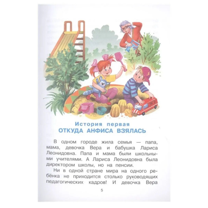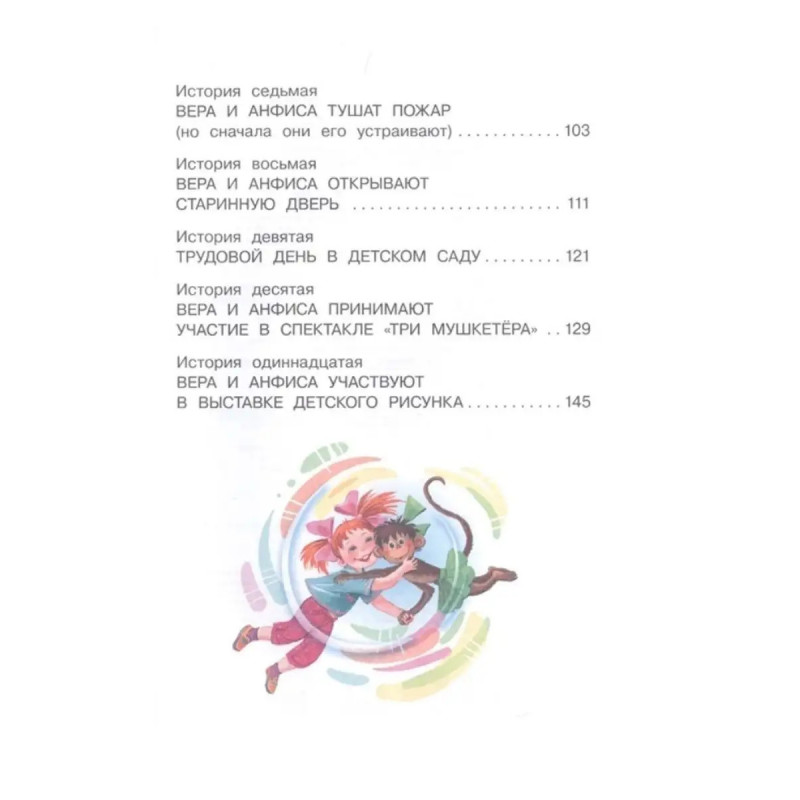 ISBN 9785-17118-1369. Про Веру и Анфису. Одно из самых главных произведений, принадлежащих перу Э. Успенского, - "Про девочку Веру и обезьянку Анфису" (в нашем издании - "Про Веру и Анфису"). Это целый цикл забавных историй, которым положил начало заказ издательства "Малыш" писателю Э. Успенскому на поучительные сказки для дошкольников о том, какие опасности могут их поджидать дома и на улице, в поликлинике и детском саду. Однако довольно быстро короткие повести про вездесущую обезьянку и "правильную" Веру переросли рамки заказа и превратились в цикл весёлых произведений, а затем и мультфильмы. В эту книгу включены только классические истории.. Для младшего школьного возраста.