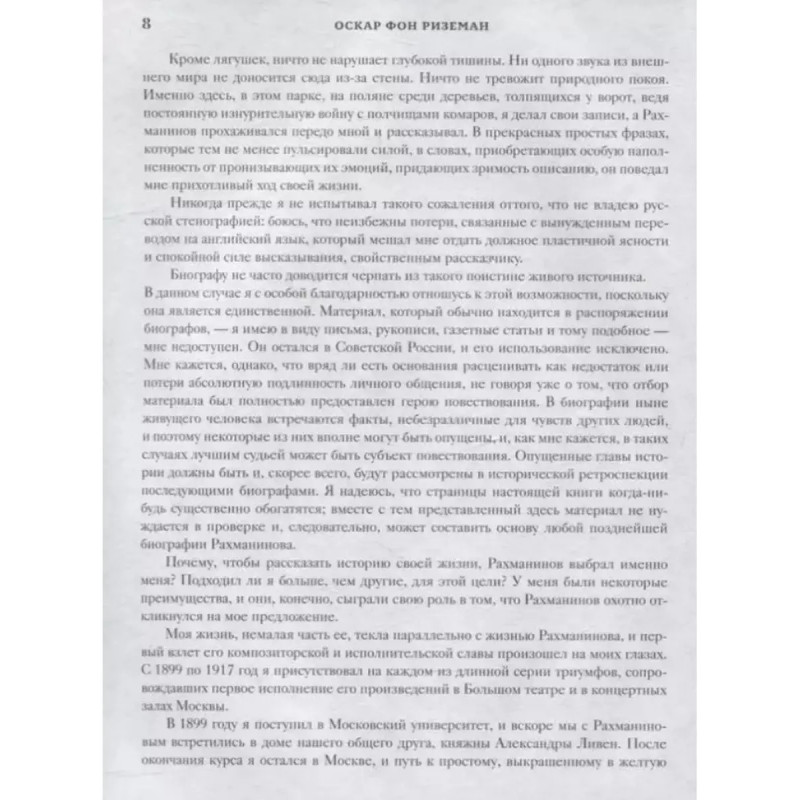 Воспоминания. Сергей Васильевич Рахманинов, к сожалению, не оставил мемуаров, и перед нами фактически единственный подлинный мемуарный документ рассказ композитора о себе. Книга воспоминаний Рахманинова, записанных Оскаром фон Риземаном, была издана в Лондоне в 1934 году. Со страниц книги звучит голос нашего великого соотечественника, рассказывающего о своем детстве, годах учения, первых шагах в качестве пианиста, дирижера, о драматических событиях и триумфах, сделавших его уже к тридцати годам гордостью и славой России. Выход альбома приурочен к 150-летию со дня рождения великого композитора.