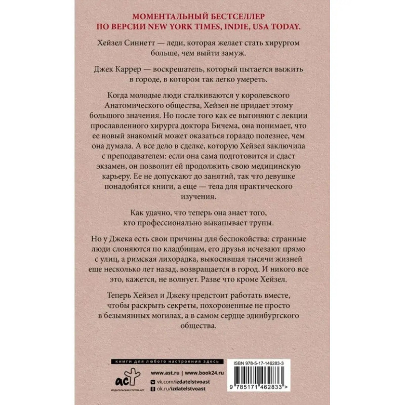Анатомия любви. Шварц Д. Хейзел Синнетт леди, которая желает стать хирургом больше, чем выйти замуж. Джек Каррер воскрешатель, который пытается выжить в городе, в котором так легко умереть. Когда молодые люди сталкиваются у королевского Анатомического общества, Хейзел не придает этому большого значения. Но поcле того как ее выгоняют с лекции прославленного хирурга доктора Бичема, она понимает, что ее новый знакомый может оказаться гораздо полезнее, чем она думала. А все дело в сделке, которую Хейзел заключила с преподавателем: если она сама подготовится и сдаст экзамен, он позволит ей продолжить свою медицинскую карьеру. Ее не допускают до занятий, так что девушке понадобятся книги, а еще тела для практического изучения. Как удачно, что теперь она знает того, кто профессионально выкапывает трупы. Но у Джека есть свои причины для беспокойства: странные люди слоняются по кладбищам, его друзья исчезают прямо с улиц, а римская лихорадка, выкосившая тысячи жизней еще несколько лет назад, возвращается в город. И никого все это, кажется, не волнует. Разве что кроме Хейзел. Теперь Хейзел и Джеку предстоит работать вместе, чтобы раскрыть секреты, похороненные не просто в безымянных могилах, а в самом сердце эдинбургского общества.