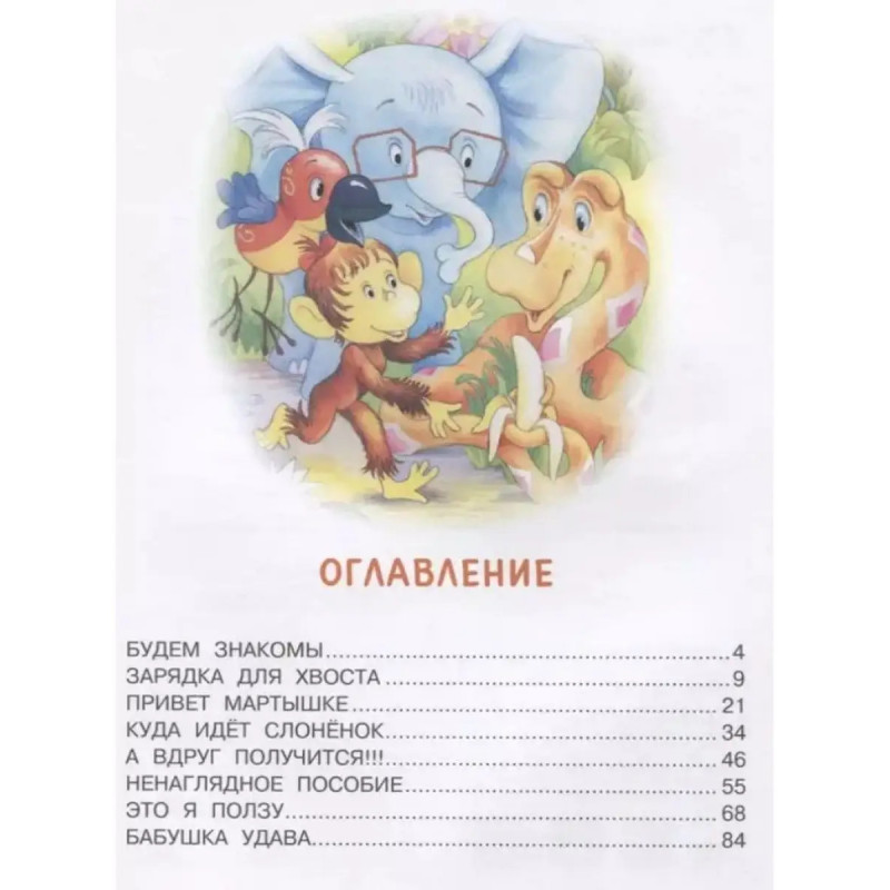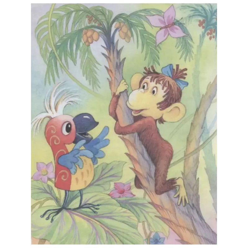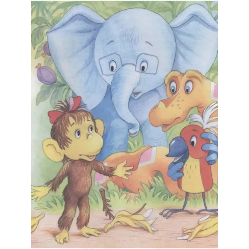 38 попугаев. Остер Г. Б. Знаменитые сказки из цикла 38 попугаев про мартышку, слонёнка, удава и попугая всегда вызывают у маленьких читателей много вопросов. Хотя бы потому, что в настоящих джунглях эти персонажи дружить никак не могут, и удав наверняка запросто проглотит 38 попугаев, а мартышка вряд ли поделится бананами со слонёнком. Зато дети очень хорошо чувствуют сходство между собой и этими сказочными детёнышами диких животных: слонёнок добрый, но робкий, мартышка энергичная и настырная, удав сильный и бесхитростный, а попугай умный, но чересчур самоуверенный. Однако они научились дружить между собой, и это пример для юных детсадовцев. Для дошкольного возраста.