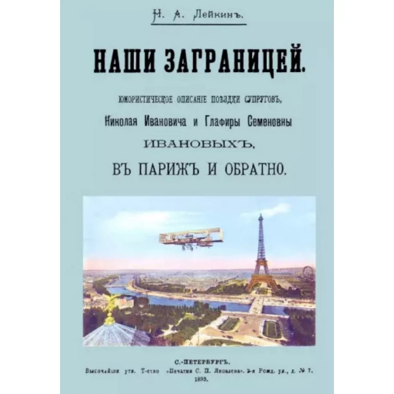 Наши за границей. Лейкин Н.А. Репринт с издания. СПб. 1899.Лейкин Николай Александрович (1841-1906) - известный юморист. Род. в старинном петербургском купеческом семействе, образование получил в петерб. немецком реформатском училище, был приказчиком, служил в страховом обществе, но скоро оставил коммерческую деятельность. Последние 15 лет Л. принимает деятельное участие в спб. городской думе. Л. - чрезвычайно плодовитый писатель. Начав с небольших юмористических очерков и стихотворений в "Русском Мире", "Искре" и др. и поместив в журналах обратившие на себя внимание очерки "Апраксинцы" ("Библ. для Чтения", 1863), "Биржевые артельщики" ("Современник", 1864) и др., Л. с начала 1870-х гг. становится постоянным сотрудником "Петербургской Газеты" и здесь почти каждый день помещает "сцены" из купеческого, мещанского и низшего петербургского быта. Общее число написанных Л. сцен достигает 10 тысяч; только часть их вошла в сорок отдельно изданных томов. Более известные сборники сцен Л.: "Где апельсины зреют"