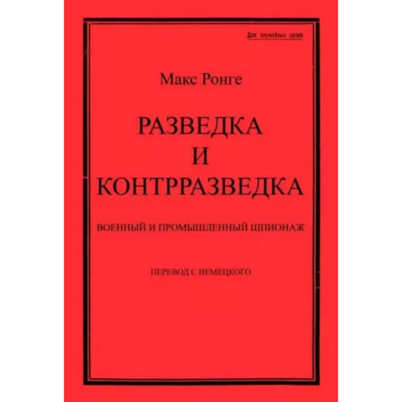 Разведка и контрразведка. Военный и промышленный шпионаж. Ронге М. Текст набран с издания М., Воениздат НКО СССР, 1939. Перевод с немецкого. В книге изложены вопросы организации и техники работы разведывательных служб иностранных государств; имеется много интересных сведений, знакомящих читателей с целями и задачами разведки, с практикой и техникой работы разведывательных органов. Максимилиан Ронге в 1908-1914 гг. в звании капитана, затем майора руководил разведотделом Разведывательного бюро (Evidenzburo) - австро-венгерской военной разведки императорского и королевского генерального штаба. Тираж 30 экз. выполнен по технологии print-on-demand.