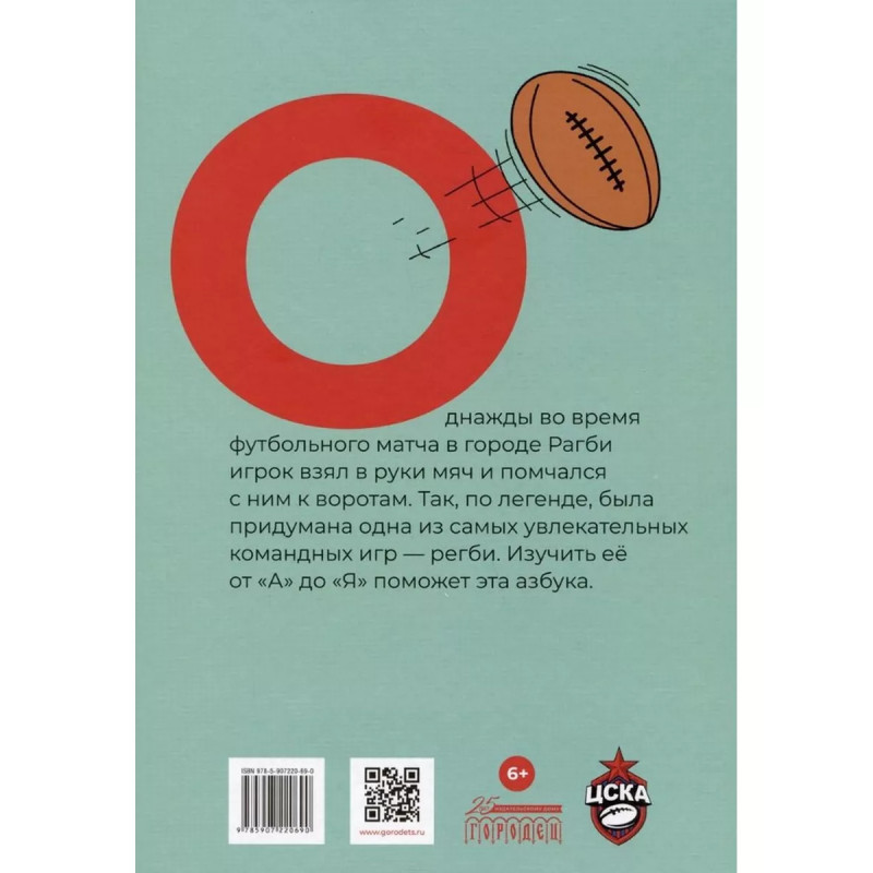 Азбука регби. Лазунин А. Однажды во время футбольного матча в городе Рагби игрок взял в руки мяч и помчался с ним к воротам.Так, по легенде, была придумана одна из самых увлекательных командных игр регби.Изучить её от А до Я поможет эта азбука.Составитель и иллюстратор Алексей Лазунин.