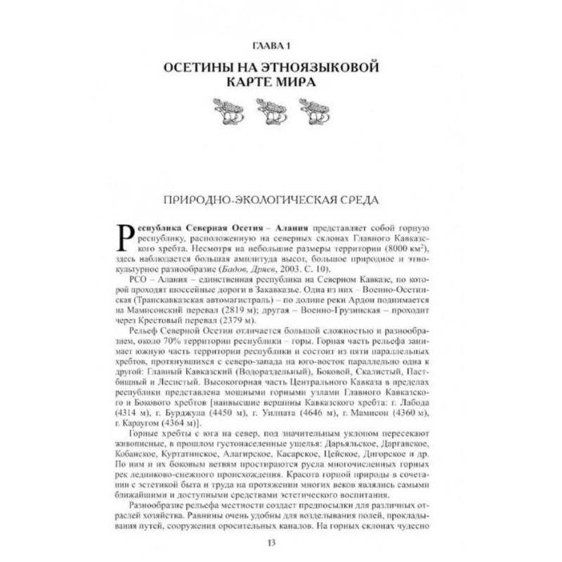 Осетины. Народы и культуры. Монография посвящена осетинам - народу, который говорит на одном из языков иранской группы индоевропейской языковой семьи и живет в самом центре Кавказа, по обе стороны Главного Кавказского хребта: в Республике Северная Осетия - Алания (Российская Федерация) и Республике Южная Осетия, а также в других регионах России и мира. Книга содержит сведения о природно-географической среде обитания осетин, их этногенезе и этнической истории, хозяйственной деятельности, материальной и духовной культуре. Авторским коллективом освещены вопросы, раскрывающие специфику общественного и семейного быта народа, календарных праздников и обрядов, народных верований. Особое внимание уделяется богатству фольклорного наследия, народным промыслам и искусству, традициям воспитания и соционормативной культуре. Анализируются характер и направление социокультурных процессов в современном осетинском обществе, дана характеристика осетинских диаспор в мире, изложен обзор политических событий в Осетии на рубеже XX-XXI вв. Для этнологов, историков и широкого круга читателей.