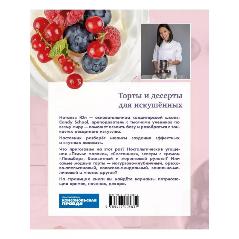 Проснуться кондитером. Классика и тренды, изысканный декор тортов и десертов. Юн Наталья. Наталья Юн - основательница кондитерской школы Candy School, преподаватель с тысячами учеников по всему миру - поможет освоить базу и разобраться в тонкостях десертного искусства. Наставник разберет нюансы создания эффектных и вкусных лакомств. Что приготовим на этот раз? Ностальгические угощения "Птичье молоко", "Сметанник", эклеры с кремом "Пломбир", бисквитный и меренговый рулеты? Или самые модные торты - йогуртово-клубничный, орехово-апельсиновый, кокосово-миндальный, ванильно-малиновый и многие другие?На страницах книги вы найдете варианты потрясающих кремов, разнообразных начинок, декора. И любители и профессионалы найдут множество полезных советов и рекомендаций. Создать шедевр не сложно и не дорого, главное - учиться у лучших.