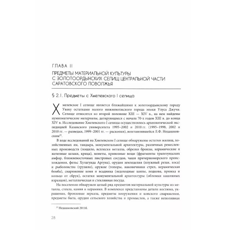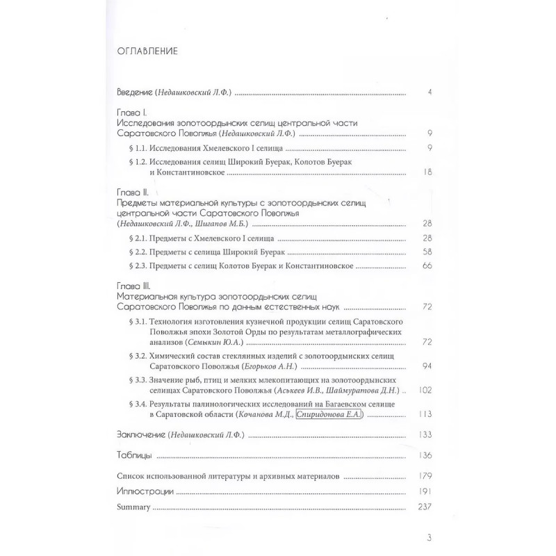 Материальная культура золотоордынских селищ центральной части Саратовского поволжья. Коллективная монография представляет первые итоги многолетних археологических исследований золотоордынских селищ центральных районов Саратовского Поволжья, изучавшихся археологической экспедицией Казанского университета. Представлены данные об исследованных объектах и найденных предметах материальной культуры. Особую ценность изданию придают данные естественнонаучных исследований: был изучен химический состав изделий из стекла и цветных металлов, проведены металлографические анализы предметов из черного металла, сделаны остеологические определения, осуществлены археоботанические исследования. Для археологов, историков, музейных работников и широкого круга интересующихся прошлым Нижнего Поволжья и эпохой Золотой Орды.