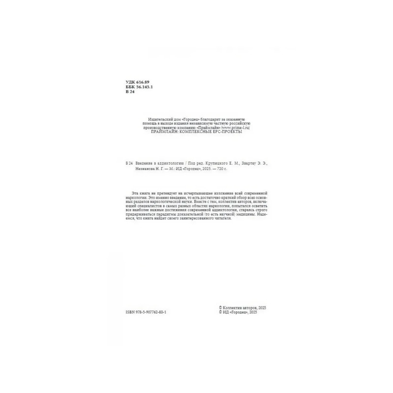 Эта книга не претендует на исчерпывающее изложение всей современнойнаркологии. Это именно введение, то есть достаточно краткий обзор всех основных разделов наркологической науки. Вместе с тем, коллектив авторов, включающий специалистов в самых разных областях наркологии, попытался осветить все наиболее важные достижения современной аддиктологии, стараясь строго придерживаться парадигмы доказательной (то есть научной) медицины. Надеемся, что книга найдет своего заинтересованного читателя.