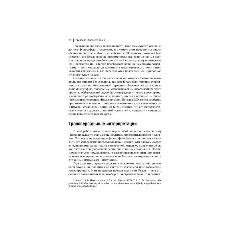 В этой работе мы не ставим перед собой задачи описать систему Гегеля, проследить этапы ее становления, определить контекст и влияние. Это совсем не введение в философию Гегеля и не попытка изложить ее последовательно и связно. Мы следуем скорее за вспышками фасцинации гегелевской мыслью, выхваченной из контекста и пробуждающей серии спонтанных ассоциаций. Это не горизонтальная последовательно развертывающаяся нить, но вертикальные оси, проходящие сквозь тексты Гегеля и повинующиеся почти случайным импульсам и индукциям. Книга предназначена для философов и всех интересующихся философской проблематикой и ее приложениями к политике, обществу, человеку, познанию.
