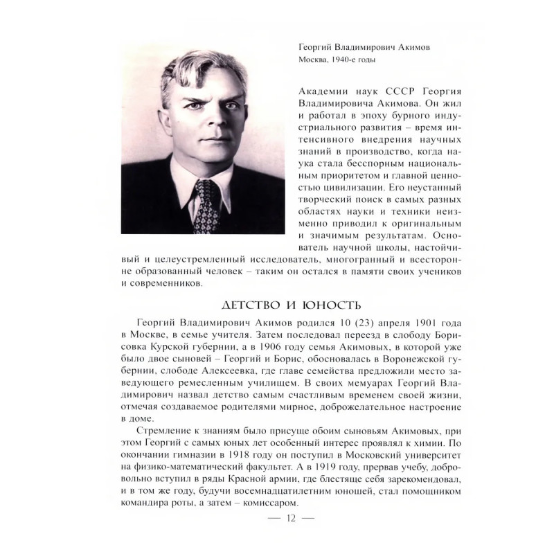 Издательский проект посвящен одаренному и преданному своему делу исследователю Георгию Владимировичу Акимову (1901-1953) - выдающемуся ученому и организатору отечественной науки и техники XX века, члену-корреспонденту Академии наук СССР, лауреату трех Сталинских премий, блестящему представителю плеяды талантливых ученых-новаторов нашей страны, фундаментальные исследования и открытия которых до настоящего времени актуальны и составляют несомненное национальное достояние в области внедрения научных знаний в производство. Воспоминания (автобиографические записки) Г. В. Акимова публикуются впервые. Издание дополнено воспоминаниями его потомков, фотографиями из семейного альбома, а также включает статьи об авторе, архивные документы, биобиблиографию.