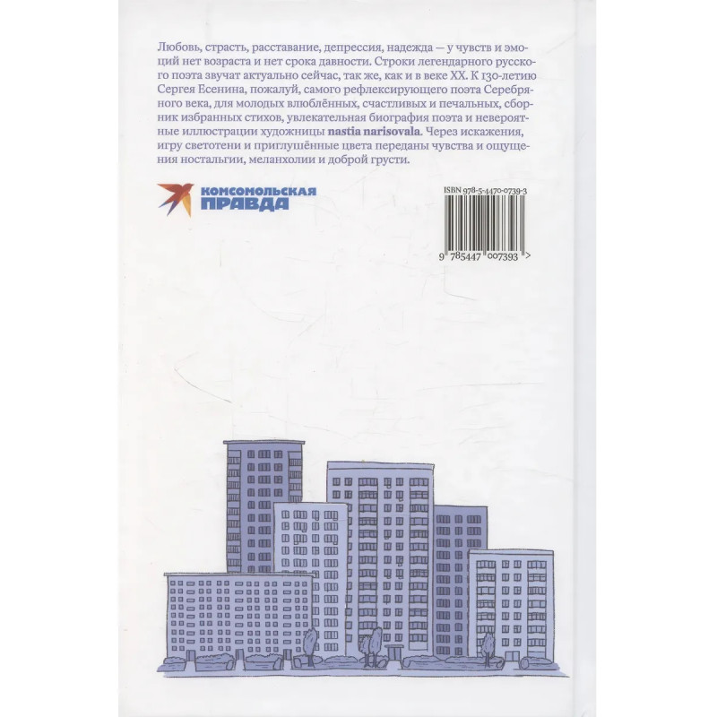 Любовь, страсть, расставание, депрессия, надежда у чувств и эмоций нет возраста и нет срока давности. Строки легендарного русского поэта звучат актуально сейчас, так же, как и в веке ХХ. К 130-летию Сергея Есенина, пожалуй, самого рефлексирующего поэта Серебряного века, для молодых влюбленных, счастливых и печальных, сборник избранных стихов, увлекательная биография поэта и невероятные иллюстрации художницы nastia narisovala. Через искажения, игру светотени и приглушённые цвета переданы чувства и ощущения ностальгии, меланхолии и доброй грусти. Причины купить книгу:- Сборник стихов Сергея Есенина с уникальными иллюстрациями;- Культовые произведения в современном визуальном прочтении;- Чувства и рефлексии, не подвластные времени;- Любовь без срока давности;- Редкие факты из биографии и воспоминания современников;- Избранные стихотворения, ставшие символом эпохи;- Истории о людях и событиях, которые повлияли на судьбу поэта;- Глубокие размышления о любви, Родине и философии жизни и смерти;- Тексты, которые сохранили чувственность и силу до наших дней;- Дополнен комментариями, которые помогают глубже понять творчество поэта;- Атмосферное издание, передающее дух времени и внутренний мир автора;- Коллекционное издание станет ценным дополнением домашней библиотеки.