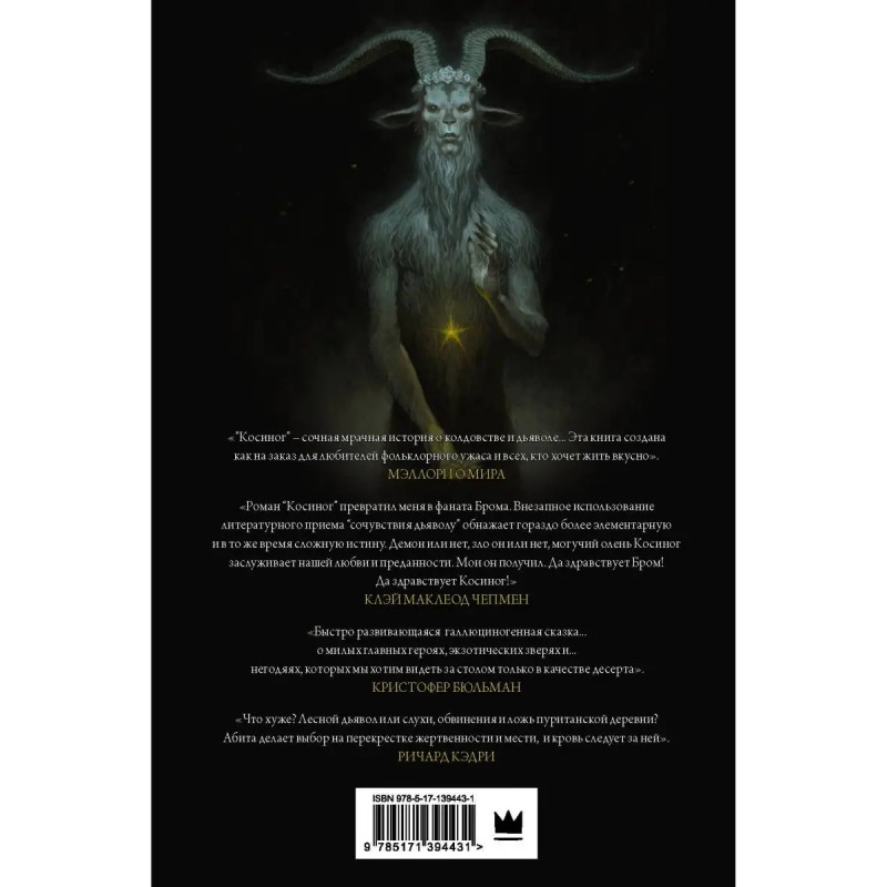Если вы любите мистические хорроры, то это книга для вас. Косиног: История о колдовстве написана как готическая сказка со своим уникальным потусторонним миром. Здесь есть место охоте на ведьм, ритуальным жертвоприношениям, сделкам с дьяволом и божественным силам. Атмосферу книги задают иллюстрации самого автора. Жуткие изображения гарантируют мурашки по коже и кошмары наяву. Джеральд Бром широко известен в Голливуде, работал над постерами фильмов Ван Хельсинг, Сонная лощина, Скуби Ду и сотрудничал с фирмами Coca-Cola, CNN, IBM.