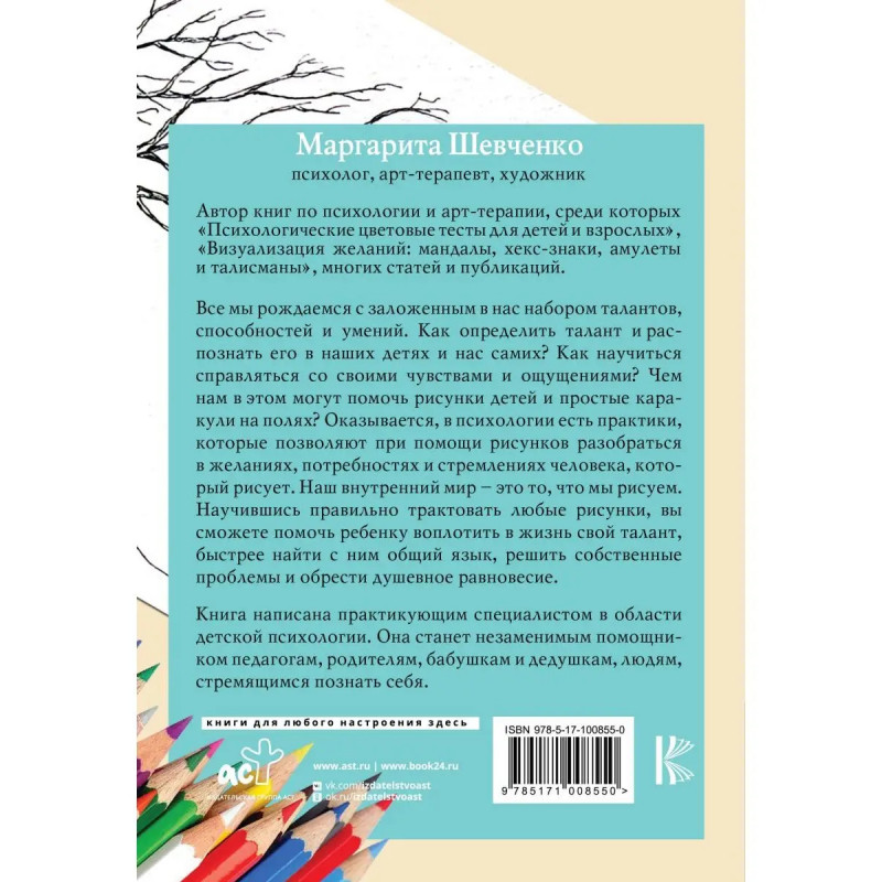 Все мы рождаемся с заложенным в нас набором талантов, способностей и умений. Как определить талант и распознать его в наших детях и нас самих? Как научиться справляться со своими чувствами и ощущениями? Чем нам в этом могут помочь рисунки детей и простые каракули на полях? Оказывается, в психологии есть практики, которые позволяют при помощи рисунков разобраться в желаниях, потребностях, стремлениях и просьбах человека, который рисует. Наш внутренний мир это то, что мы рисуем. Научившись правильно трактовать любые рисунки, вы сможете помочь воплотить ребенку в жизнь свой талант, быстрее найти с ним общий язык, решить собственные проблемы и обрести душевное равновесие. Книга написана практикующим специалистом в области детской психологии. Она станет незаменимым помощником педагогам, родителям, бабушкам и дедушкам, людям, стремящимся познать себя.