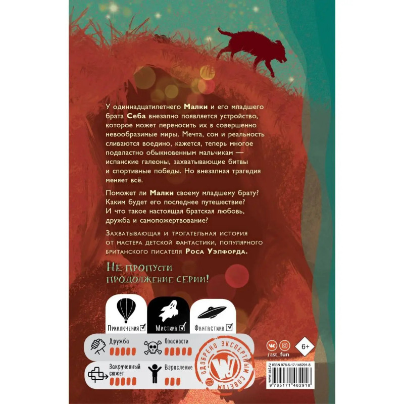 У одиннадцатилетнего Малки и его младшего брата Себа внезапно появляется устройство, которое может переносить их в совершенно невообразимые миры. Мечта, сон и реальность сливаются воедино - испанские галеоны, захватывающие битвы и спортивные победы - кажется, теперь всё подвластно обыкновенным мальчикам, но внезапная трагедия меняет всё. Поможет ли Малки своему младшему брату? Каким будет его последнее путешествие? И что такое настоящая братская любовь, дружба и самопожертвование? Захватывающая и трогательная история от мастера детской фантастики, популярного британского писателя Роса Уэлфорда.