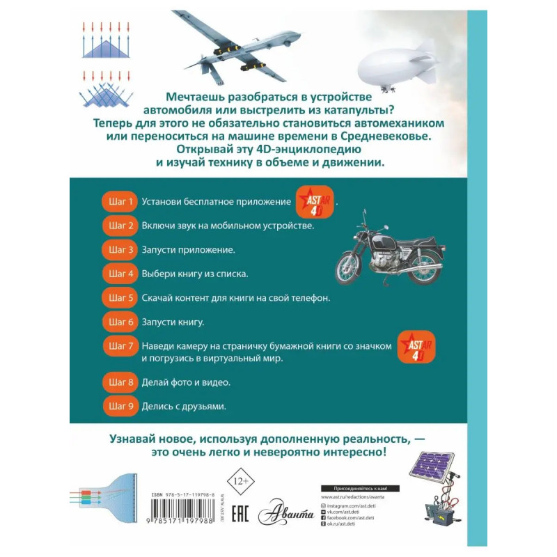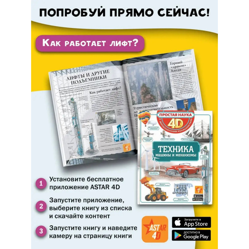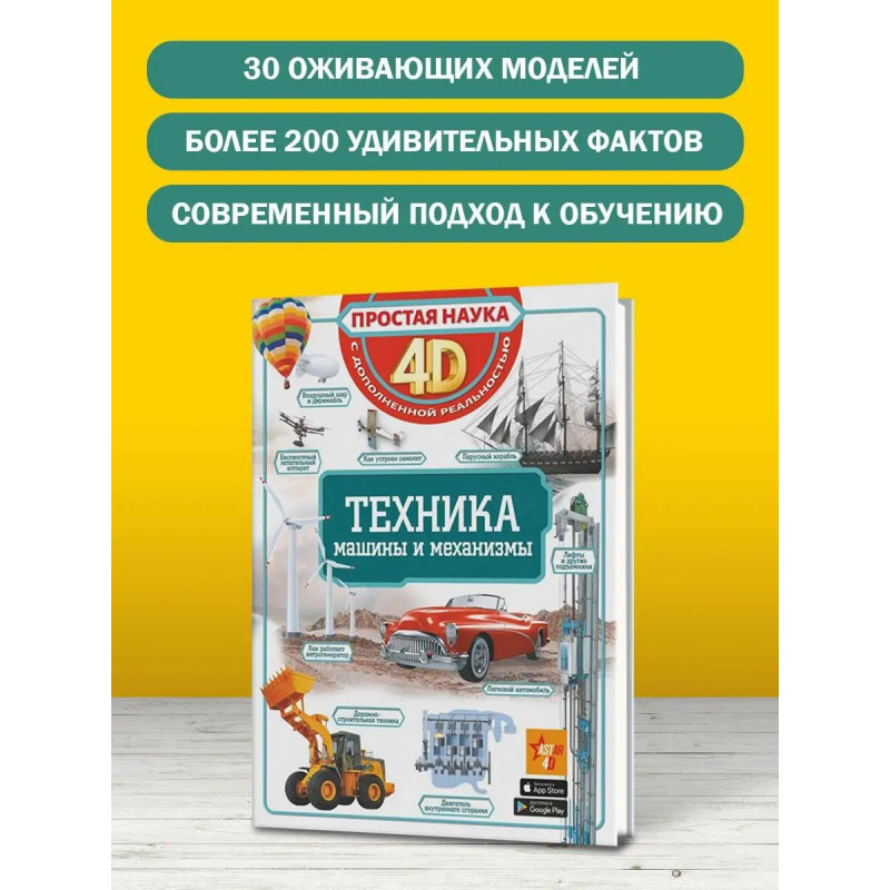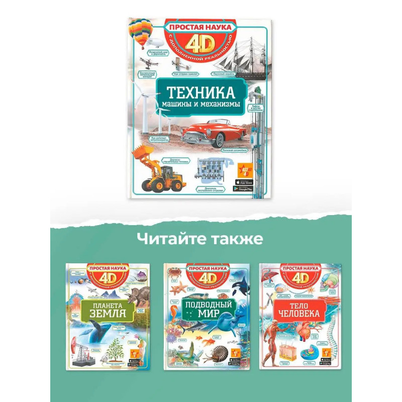Эта книга рассказывает о различных машинах и механизмах, придуманных людьми за историю нашей цивилизации. За устройством и работой самых различных технических изобретений теперь можно наблюдать прямо на этих страницах, ведь это не обычная книга, а 4D-издание! Читай, изучай иллюстрации, рассматривай объемные движущиеся модели, слушай познавательные аудиозаписи. Элементы дополненной реальности обязательно помогу новым знаниям запомниться надолго. Изучать технику в 4D не только легко, но и невероятно интересно! Для среднего и старшего школьного возраста.