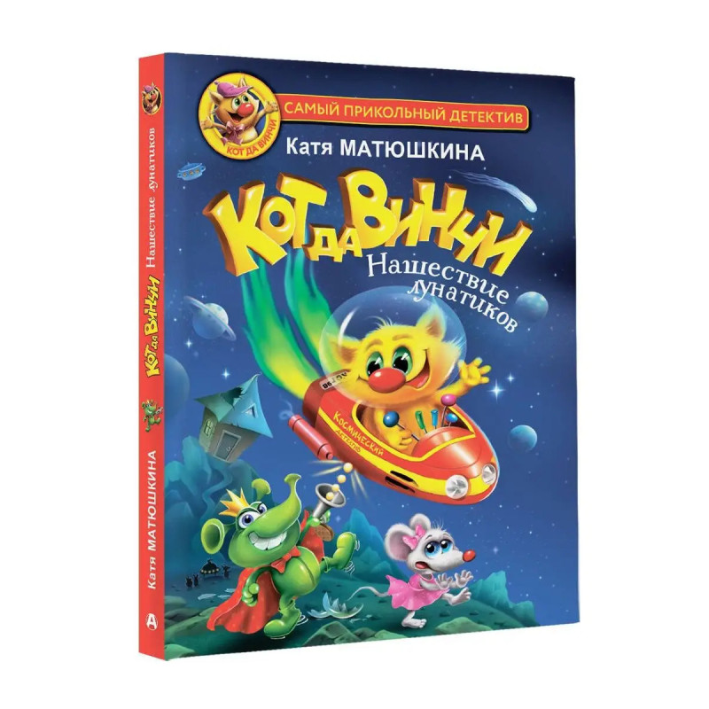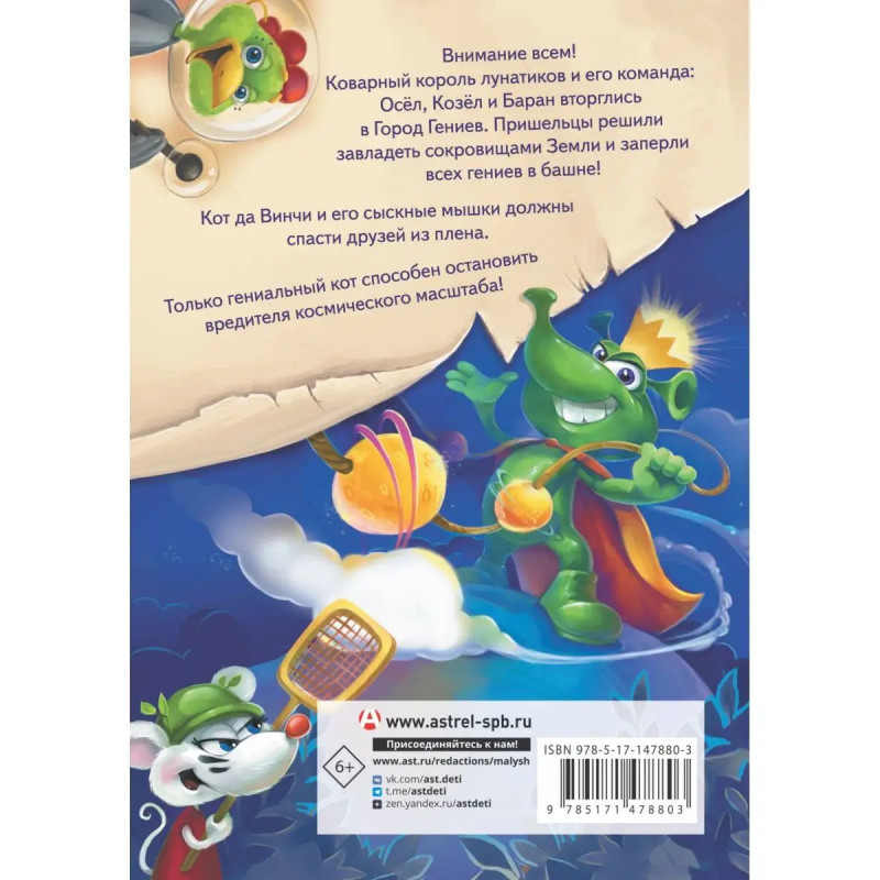 Суммарный тираж книг автора более 4 млн экземпляров. Книги Кати Матюшкиной издаются в России, Китае, Украине, Болгарии и Латвии. Долгожданное переиздание четвёртой книги самого популярного цикла Кати Матюшкиной Кот да Винчи. Захватывающая космическая история! Гениальный суперкот и его друзья выступают против короля лунатиков, чтобы спасти Город Гениев от коварных вторженцев и вернуть жителям радость, а городу былую красоту! Невероятно красочные иллюстрации Кати Матюшкиной и Сони Каталовой и множество интерактивных заданий. Весёлое увлекательное чтение для детей старшего дошкольного и младшего школьного возраста. Понравится даже тем, кто не любит читать!