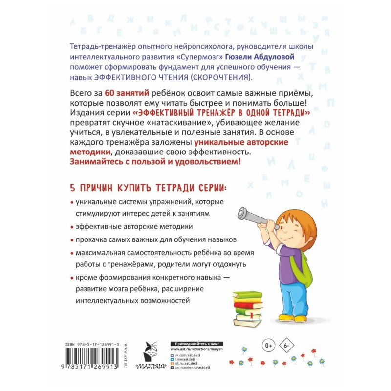 Хотите, чтобы ваш ребёнок стал читать быстрее и понимать больше всего за 6 занятий? Тоггда эта книга станет для вас настоящей палочкой-выручалочкой. Уникальная методика от опытного нейропсихолога поможет легко и весело освоить самые важные приёмы скорочтения. Скорочтения - эффективный фундамент для успешного обучения!