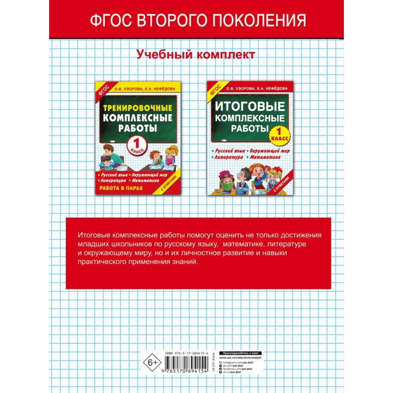 Хотите узнать, каков уровень школьной подготовки у вашего ребёнка? Рабочая тетрадь Итоговые комплексные работы 1 класс поможет оценить знания первоклассника по русскому языку, математике, литературе и окружающему миру.Соответствует ФГОС (федеральному государственному образовательному стандарту). Есть раздел ответов. Большой размер книги и крупный шрифт удобны для ребёнка. Материал основан на эффективной методике известного педагога-практика О.В.Узоровой. Суммарный тираж книг автора свыше 50 миллионов экземпляров! На учебных пособиях Ольги Узоровой выросло уже несколько поколений школьников. Знания нуждаются в повторении!Для начального образования.
