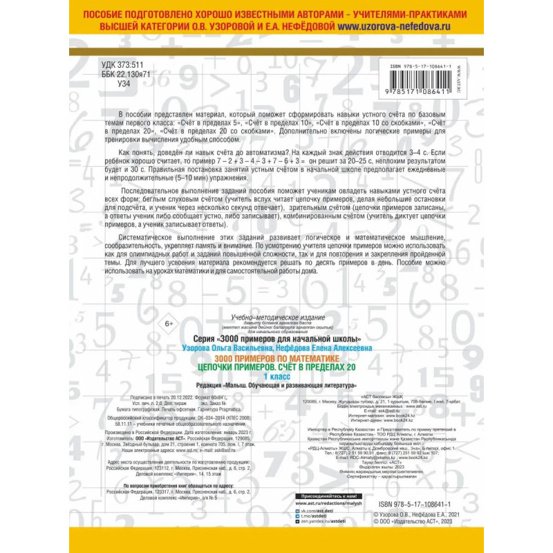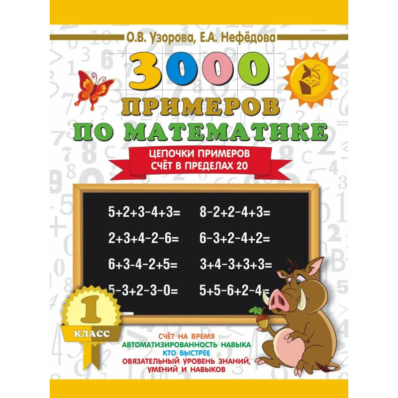 Пособия этой серии подготовлены хорошо известными авторами учителями-практиками высшей категории О.В. Узоровой и Е.А. Нефёдовой и пользуются неизменной популярностью у родителей и учителей.В пособии представлен материал, который поможет сформировать навыки устного счета по базовым темам первого класса: Счет в пределах 5, Счет в пределах 10, Счет в пределах 10 со скобками, Счет в пределах 20, Счет в пределах 20 со скобками, а также логические примеры для тренировки вычисления удобным способом.