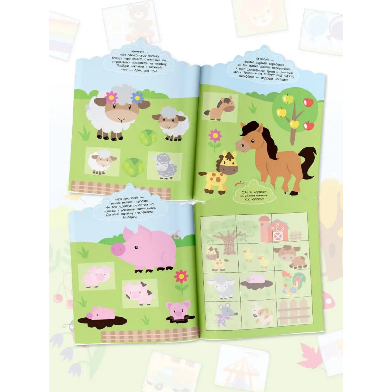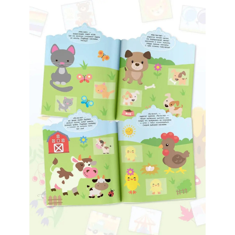 Серия книг Первые наклейки малыша отличный вариант для знакомства с домашними животными, развития моторики, логики и закрепления знаний об окружающем мире. Красочно иллюстрированная книжка о зверятах, обитающих на ферме, порадует компанию дошколят их ждёт масса увлекательных заданий, они смогут сами подобрать место для каждой наклейки и дополнить картинки. Увлекательная игра гарантирована!