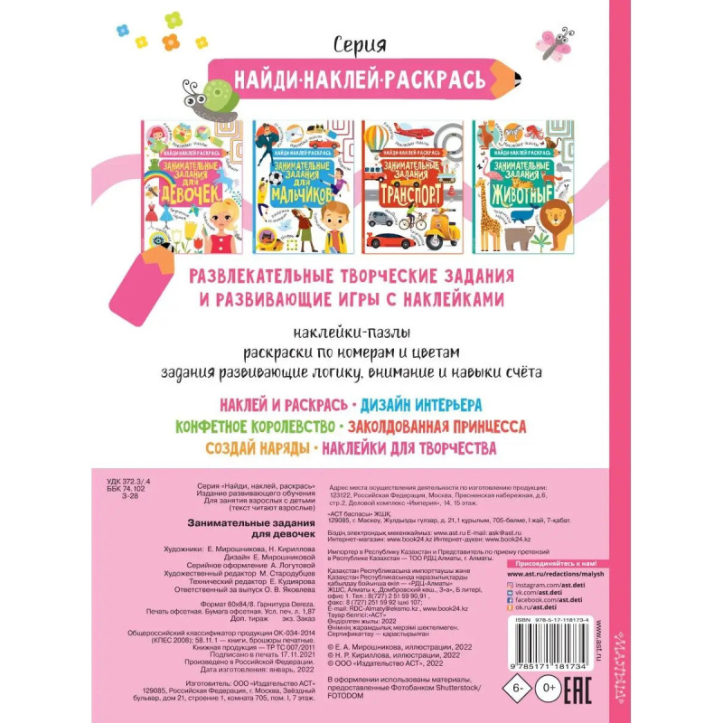 Характеристики Занимательные задания для девочек.