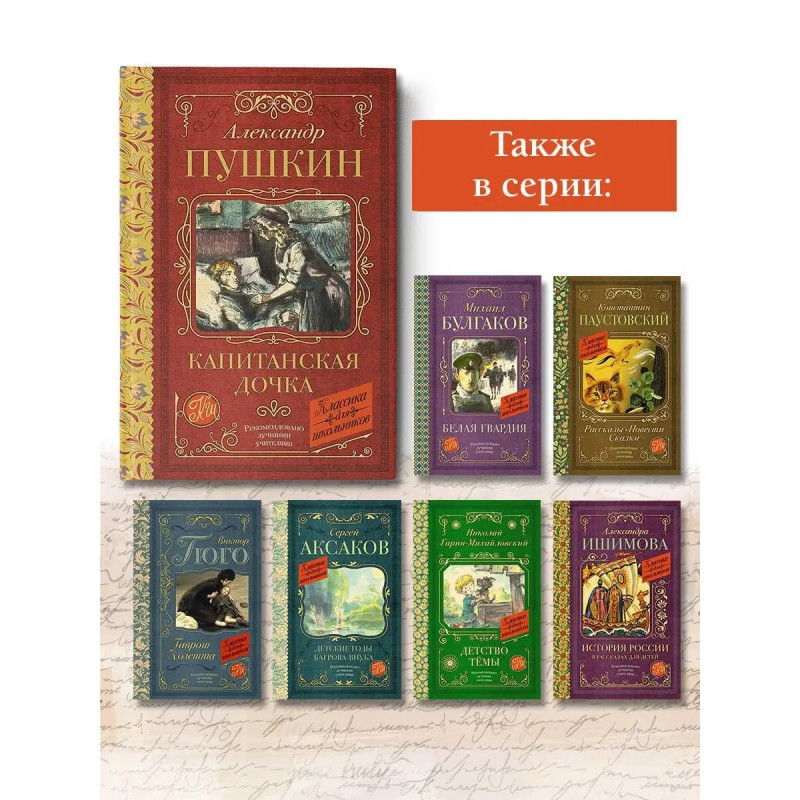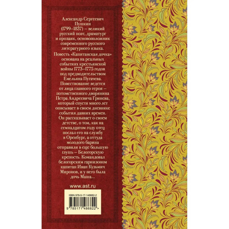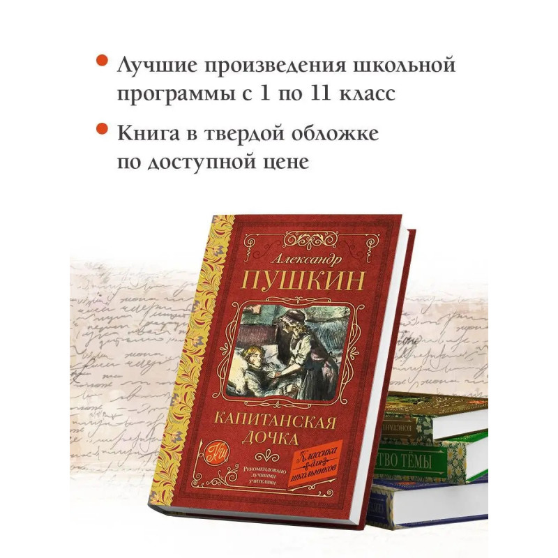 Одно из самых известных произведений Александра Сергеевича Пушкина! Повесть "Капитанская дочка" основана на реальных событиях крестьянской войны 1773-1775 годов под предводительством Емельяна Пугачева. Это история расскажет юным читателям о смелости и верности, дружбе, первой любви и истории родного края. Произведение входит в школьную программу по литературе. В серию включены лучшие произведения отечественной и зарубежной литературы, входящие в школьную программу с 1 по 11 класс и в списки дошкольного чтения. Книги в твердом переплёте сделают знакомство с литературой легким и увлекательным. Серия, которая не ударит по семейному бюджету и поможет юному читателю расти нравственно и интеллектуально!